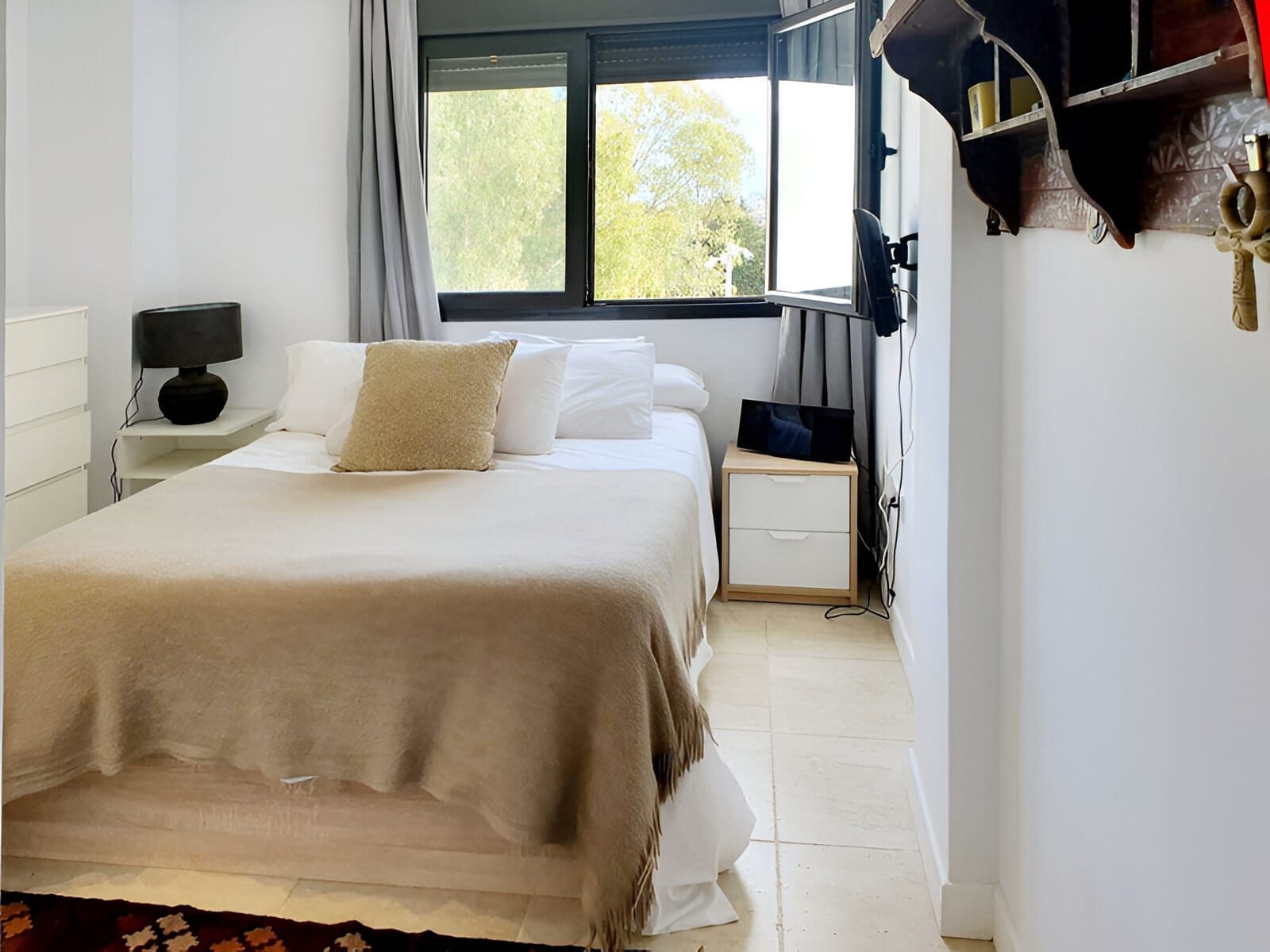 Al doilea dormitor este la fel de încântător, cu un decor minimalist și mult spațiu de depozitare. Ambele camere oferă un mediu calm și relaxant, perfect pentru a vă reface după o zi petrecută în frumoasa Costa del Sol.