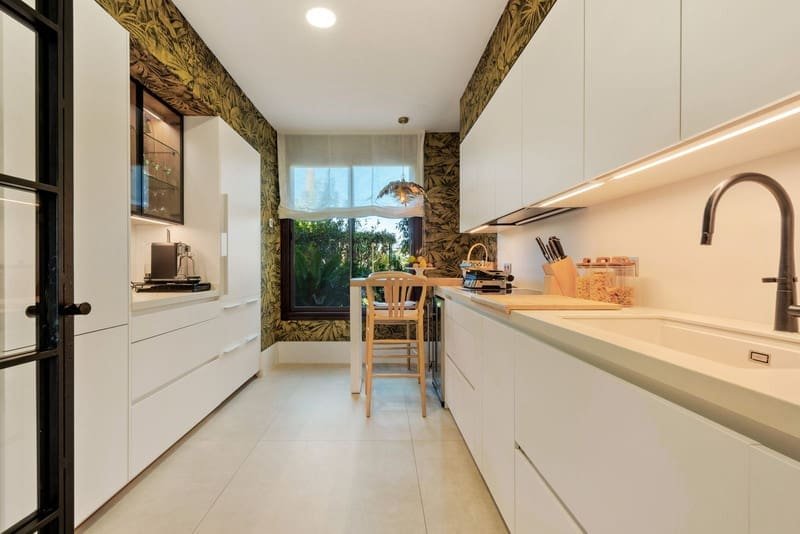 Acest splendid apartament de lux de 270 m2, inclusiv locuința și veranda, situat în Mirador del Paraíso, Benahavis, combină o decorare rafinată cu designuri de ultimă generație. Oferă un spațiu de locuit generos și luminos, imersat într-un mediu natural care emană liniște. Aceasta este o proprietate unică, rezultatul unei renovări meticuloase care a combinat două apartamente cu 2 și 3 dormitoare.