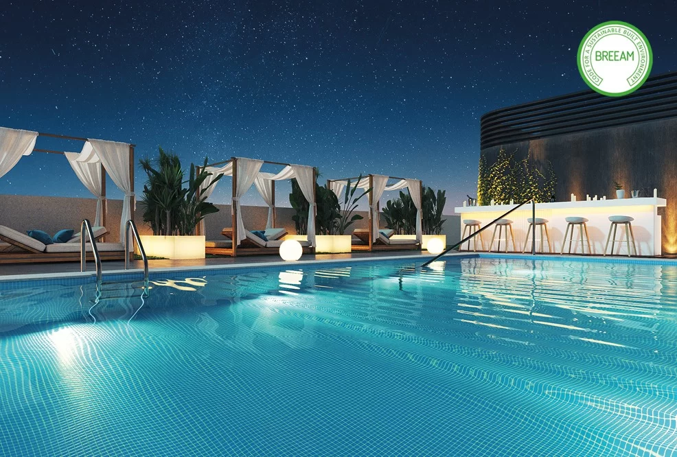 Descoperă AQ Urban Sky, un proiect inovator și modern, situat în inima orașului Malaga. Acest complex rezidențial redefinește conceptul de viață urbană, oferind apartamente de lux într-una dintre cele mai înalte clădiri din Andaluzia, cu o priveliște spectaculoasă și luminozitate naturală de neegalat, datorită înălțimii sale impresionante de 30 de etaje.