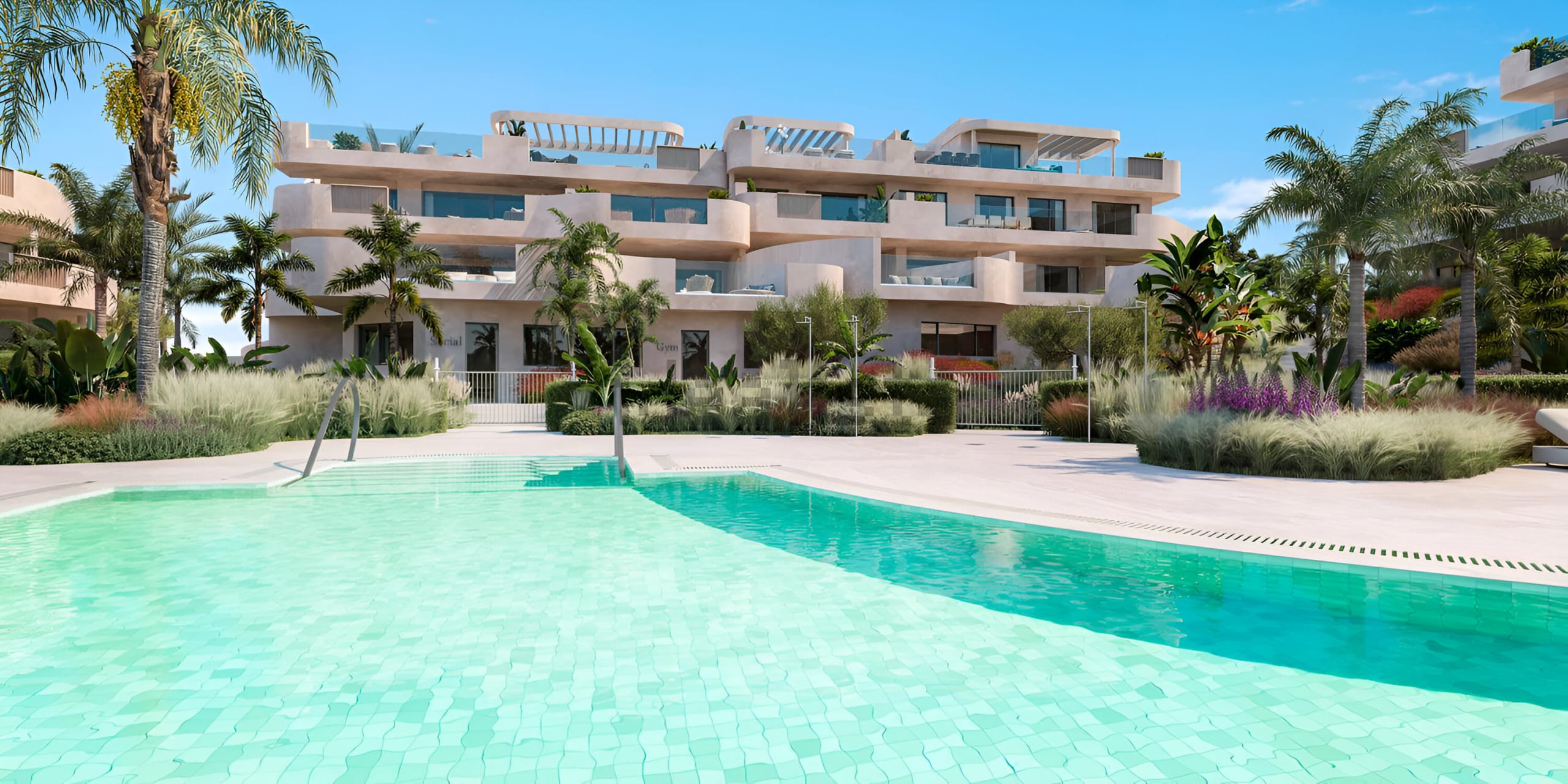 Bucură-te de grădini generoase cu piscine, zonă de plajă (solarium) și spații dedicate relaxării și stării de bine, cum ar fi zone pentru yoga și un spa echipat cu baie turcească, jacuzzi și saună. În plus, vei avea la dispoziție o sală de fitness complet echipată, spațiu de coworking, zone multimedia și de jocuri.