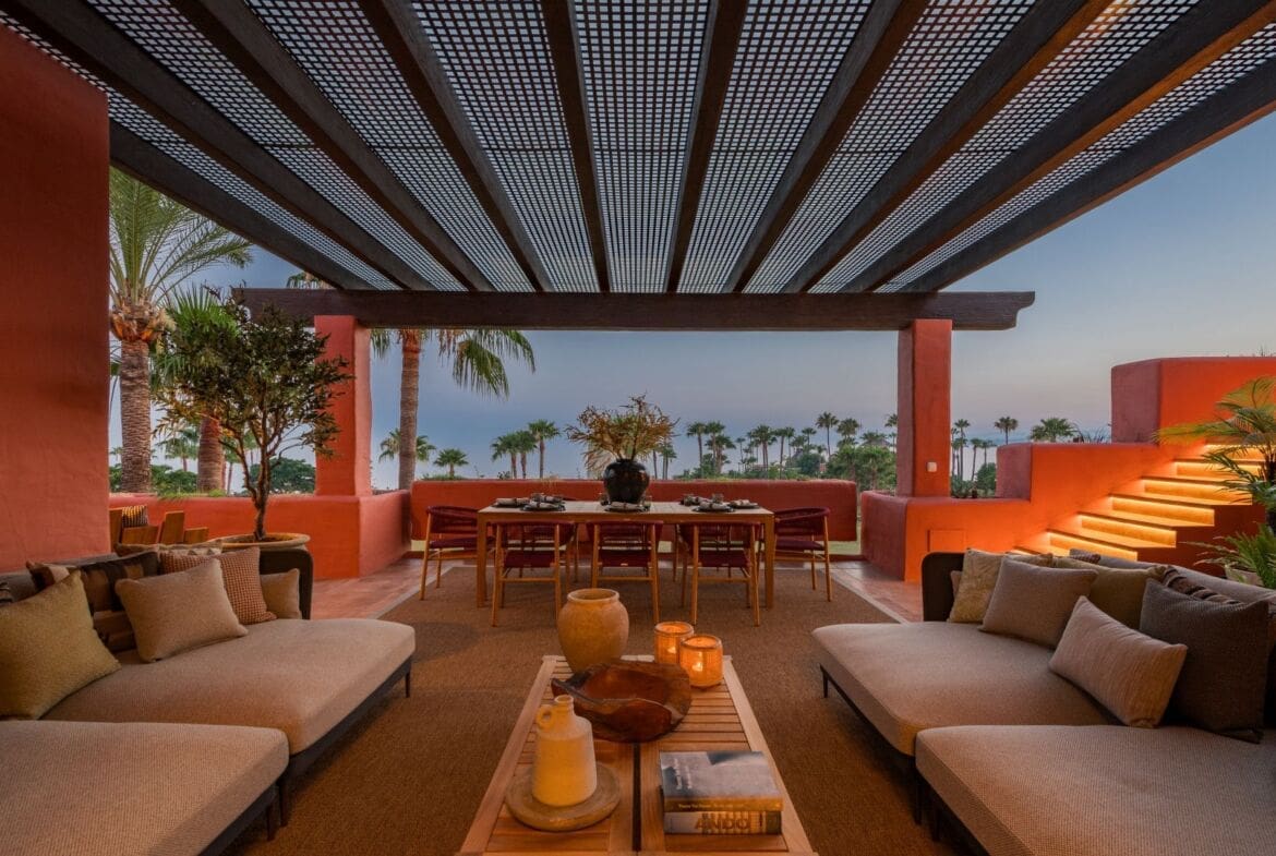 Acest spectaculos penthouse duplex complet renovat, situat în prima linie a unei complexuri de lux de pe plajă, pe New Golden Mile între Marbella și Estepona, este cu adevărat o bijuterie pe Costa del Sol.