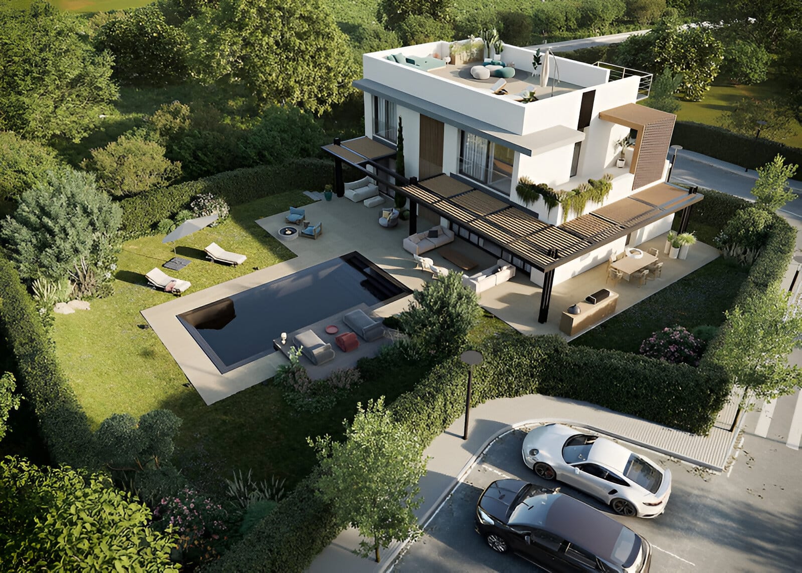 Terenurile au suprafețe cuprinse între 800 și 857 m², iar procentul de construcție permis este de 25% plus subsol.