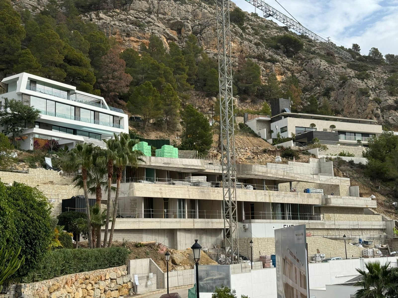 Dezvoltare nouă: Prețuri de la 5.900.000 € la 5.900.000 €. [Dormitoare: 5] [Băi: 6] [Suprafață construită: 470 m2]. Vila are o arhitectură ultramodernă. Fiecare cameră, baie, living, sufragerie și bucătărie oferă vederi panoramice asupra Mării Mediterane, Altea și Benidorm. Casa se întinde pe trei etaje conectate printr-un lift din sticlă și o scară impresionantă. Nivelul 1 include un garaj pentru două mașini, un dressing, o spălătorie și un spațiu mare de depozitare. Nivelul 2 dispune de patru dormitoare spațioase, fiecare cu baie proprie și dulapuri încorporate. Fiecare baie și dormitor au pereți din sticlă de la podea până la tavan. Fiecare dormitor este mobilat cu un pat dublu mare. Nivelul 3 găzduiește dormitorul principal, care include două dressinguri mari, o baie cu duș și cadă și o toaletă separată. Livingul este conectat la zona de luat masa și la bucătărie, în spatele cărora se află o cămară mare. Toate camerele de la acest nivel au pereți din sticlă extinși. Holul are și o baie pentru oaspeți. La exterior, există o terasă imensă care acoperă aproximativ 300 m² și o piscină infinită de 50 m² (dimensiuni: 4,4 m x 11,3 m, adâncime: 1,3 m). Pe terasa de lângă bucătărie, există o zonă acoperită pentru grătar. Fiecare baie este dotată cu bideu, iar patru băi includ și un pisoar. Toate camerele și băile au jaluzele solare care permit totuși să vă bucurați de priveliștile magnifice pe tot parcursul zilei. Fiecare baie este dotată suplimentar cu jaluzele complet opace pentru a asigura intimitate completă atunci când luminile sunt aprinse. Întreaga casă este dotată cu un sistem electric inteligent KNX. Toate ferestrele casei sunt orientate spre sud. Casa este, de asemenea, dotată cu un sistem fotovoltaic care oferă electricitate gratuită în timpul zilei, timp de peste 300 de zile însorite pe an pe Costa del Sol.