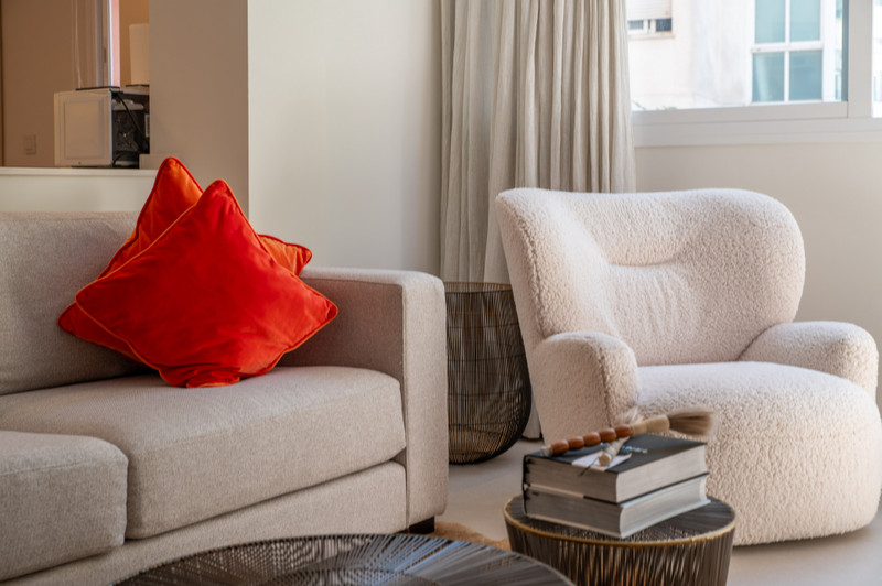 Apartamentul a fost proiectat cu gust, cu o ușă ascunsă pentru spălătorie și oferă o zonă de living și luat masa luminoasă, cu plan deschis, cu multă lumină naturală.