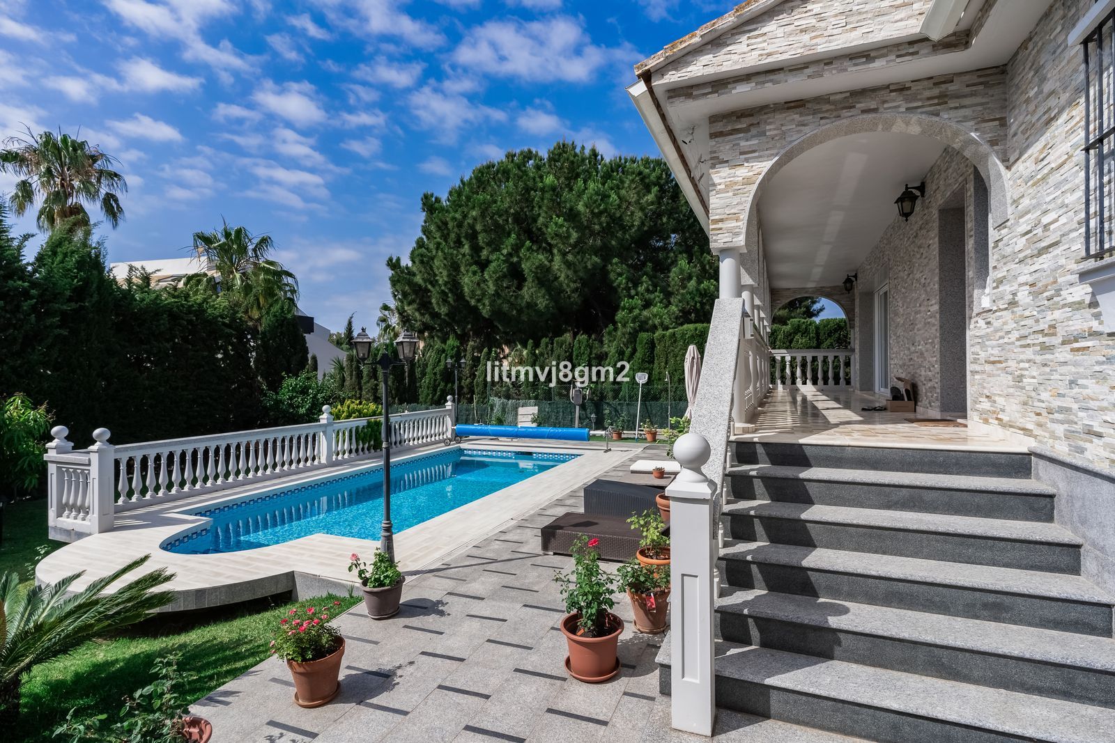 Această vilă luxoasă cu patru dormitoare, situată în zona liniștită a Artola inferioară / Hacienda Las Chapas, la doar 5 minute de mers pe jos până la mare, este epitomul eleganței și confortului. Având un design clasic cu finisaje de înaltă calitate, proprietatea dispune de o abundență de marmură, adăugând la farmecul său opulent. Interiorul este inundat de lumină naturală, evidențiind detaliile meticulos realizate din întreaga casă.