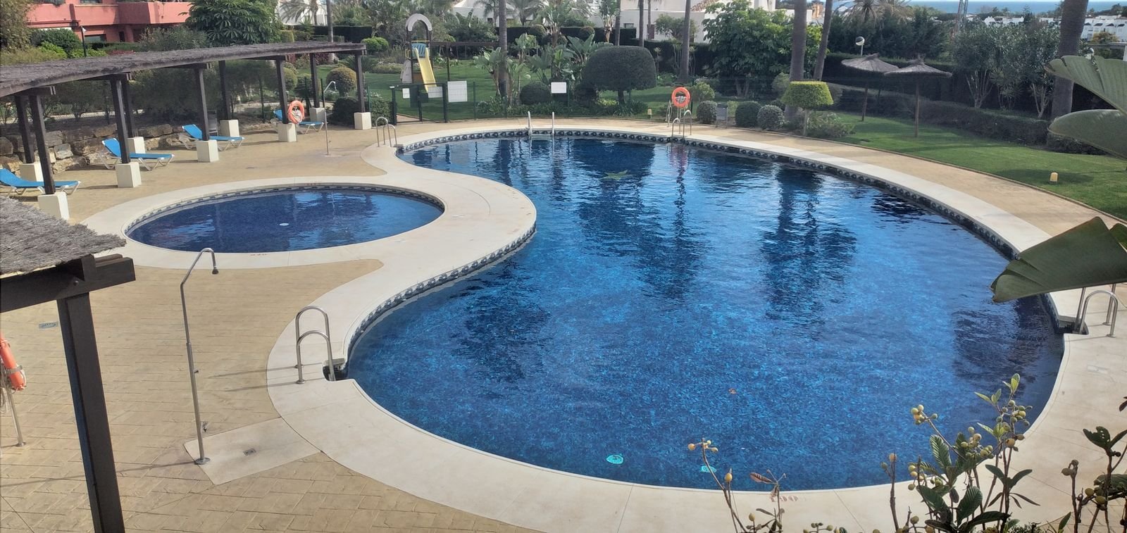 Situat într-un complex aproape de facilități și de satul Cancelada, acest apartament reprezintă o casă ideală pentru familie sau o casă de vacanță pentru pasionații de golf sau iubitorii de soare și plajă. Interiorul său spațios dispune de un living / dining mare cu acces la terasă și grădina orientată spre vest, bucătărie, cameră utilitară separată, dormitor principal cu baie proprie și un alt dormitor dublu plus baie de familie.