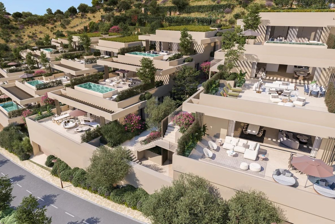 Dezvoltare nouă: Prețuri de la 2.400.000 € la 2.900.000 €. [Dormitoare: 4 – 5] [Băi: 4 – 5] [Suprafață construită: 265m2 – 337m2]. Situate într-un cadru idilic în apropiere de Marbella, aceste vile sky reprezintă cel mai nou capitol. Această dezvoltare inovatoare îmbină spațiul unei vile tradiționale cu confortul și siguranța adesea găsite în reședințele de apartamente de lux. Fiecare proprietate a fost atent proiectată pentru a maximiza intimitatea, oferind vederi panoramice la mare de pe terase extinse și interioare luminoase. Fie că doriți un sanctuar liniștit sau un loc elegant pentru a vă distra, vilele sky promit lux modern într-un cadru cu adevărat privilegiat. DESIGN ȘI DISPOZIȚII EXCLUSIVE Vilele sky din acest proiect fac parte din șase clădiri boutique, fiecare orientată strategic pentru a surprinde priveliștile uimitoare ale regiunii. Clădirile 01 până la 05 (Tip 01) oferă câte trei vile sky individuale, în timp ce Clădirea 06 (Tip 02) conține două case remarcabile. Fiecare reședință se întinde pe unul sau două etaje întregi, oferind o senzație de spațiu rar întâlnită în apartamentele convenționale. Această abordare arhitecturală nu numai că garantează priveliști neîntrerupte, dar permite și accesul privat cu lift direct la casa dumneavoastră din garajul personal. SPECIFICAȚII ȘI FINISAJE PREMIUM Fiecare vilă sky se mândrește cu materiale de înaltă calitate și o măiestrie meticuloasă. Deși fiecare casă este deja finisată la standarde excepționale, proprietarii pot alege dintr-o gamă atent selecționată de finisaje pentru a reflecta gusturile lor personale. O piscină opțională pe terasă sporește și mai mult senzația de lux. În plus, fiecare proprietate este dotată cu propriul garaj securizat și acces privat cu lift, sporind atât confortul, cât și exclusivitatea.