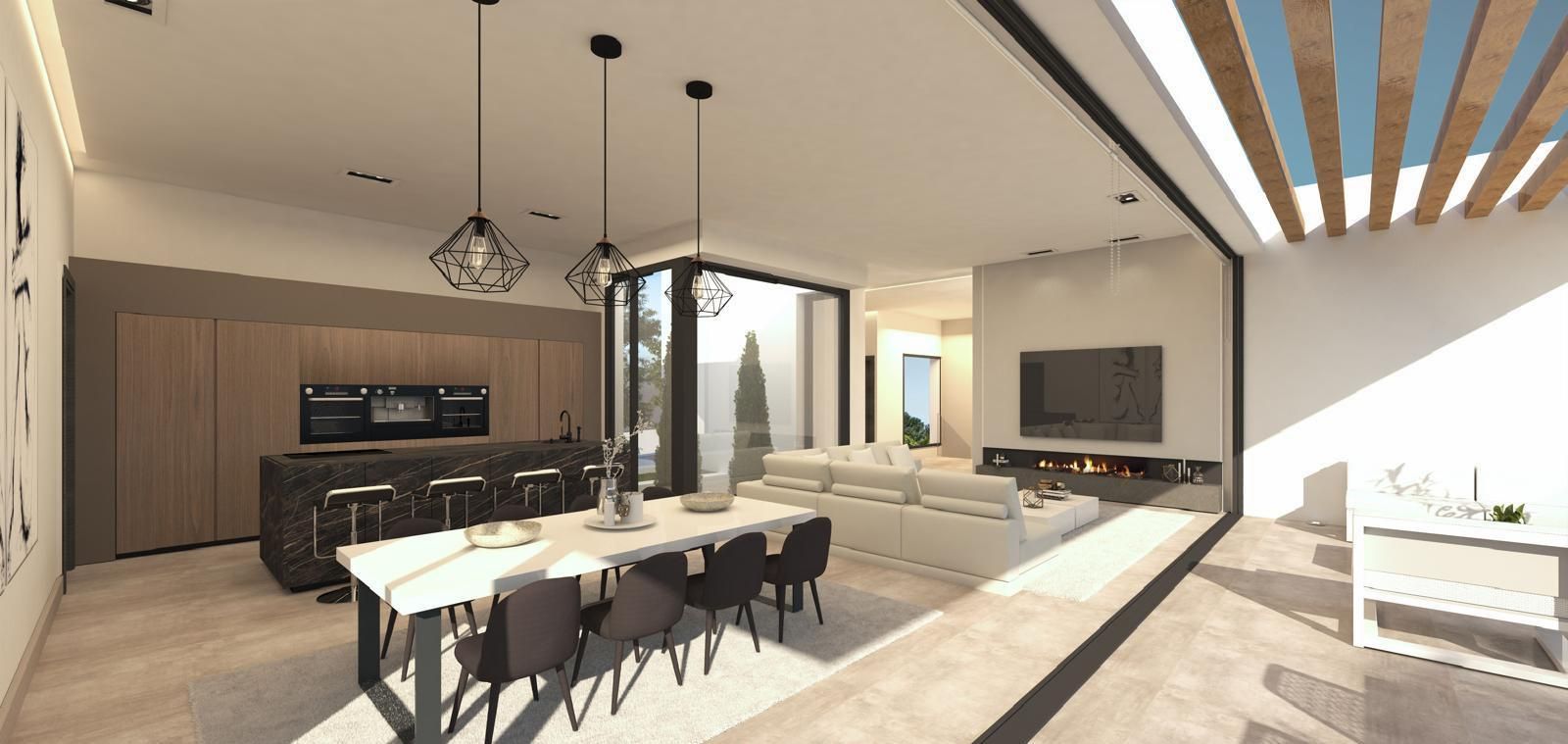 În interior, vila va dispune de interioare spațioase cu plan deschis, unde liniile curate și estetica minimalistă se întâlnesc cu finisaje premium și materiale naturale. O abundență de lumină naturală oferă vederi neîntrerupte care se extind peste dealurile și coasta înconjurătoare. Integrarea perfectă a zonelor interioare și exterioare asigură că clima mediteraneană blândă poate fi savurată pe tot parcursul anului—ideal pentru a găzdui sau pur și simplu pentru a te relaxa în sanctuarul tău privat.