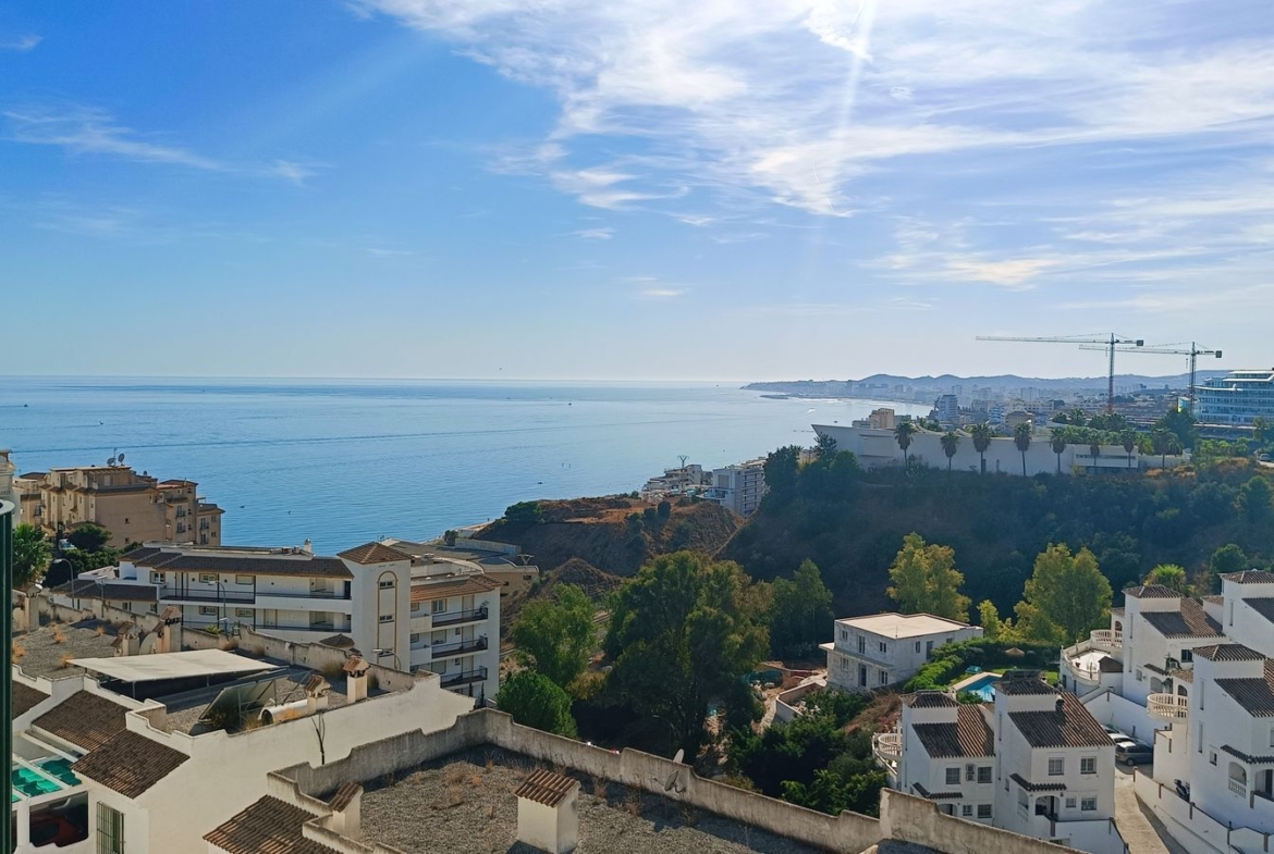 Penthouse spectaculos la doar 800 de metri de plaja Carvajal, având o terasă superioară, două dormitoare și o baie. Complex închis cu piscină, grădini comune extinse și un teren de tenis. Orientare spre vest.
