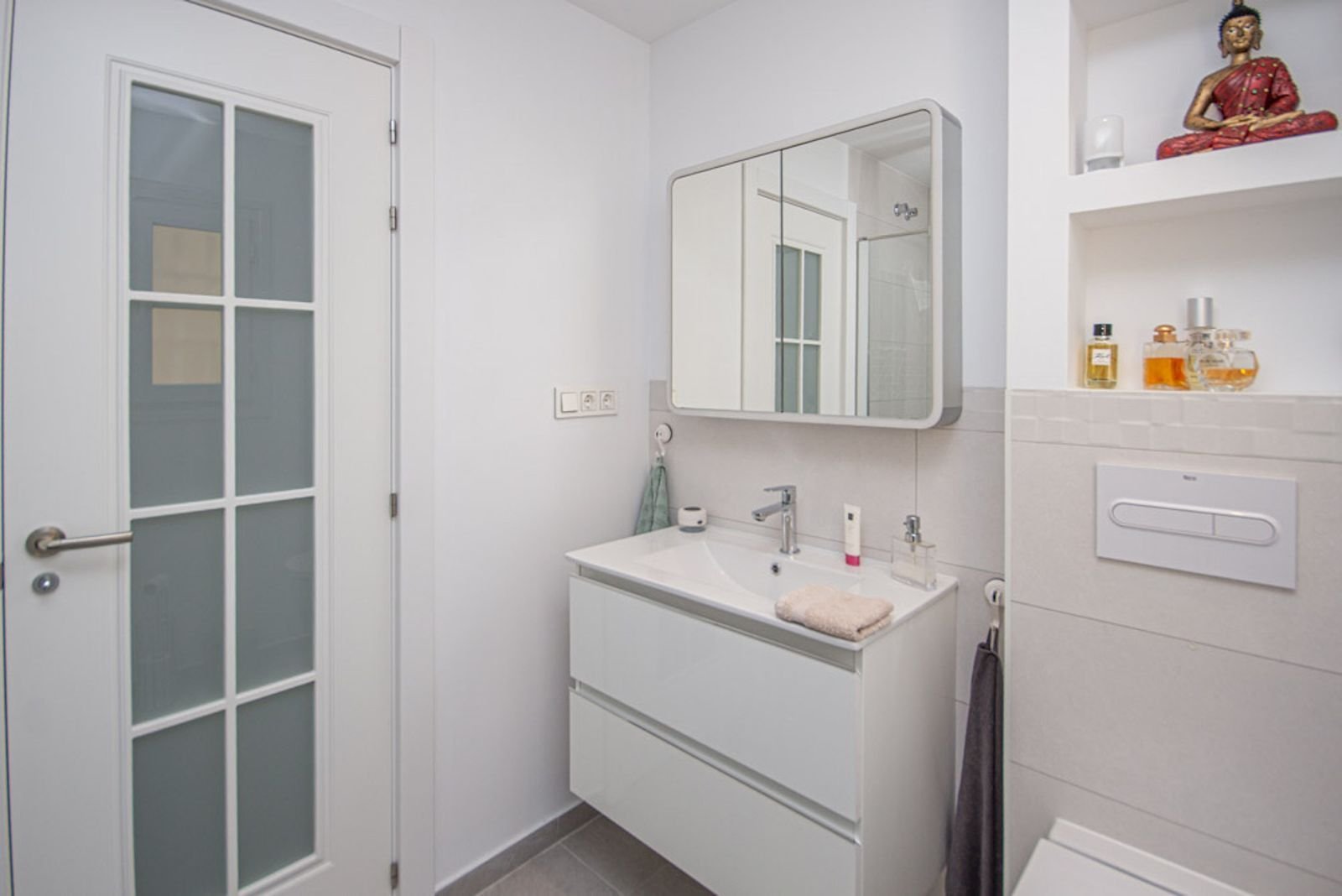 Complet renovat în 2023 la cele mai înalte standarde, proprietatea a fost gândită cu atenție pentru a crea un spațiu de locuit luminos și elegant. Renovarea a inclus pereți proaspăt tencuiți, feronerie complet nouă, o reconfigurare totală a ambelor băi, o bucătărie personalizată, aer condiționat nou cu tehnologie AirZone și draperii făcute la comandă. Fiecare detaliu a fost selectat cu grijă pentru a asigura atât stil, cât și funcționalitate.