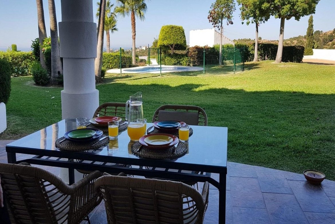 Un apartament la parter, prezentat frumos, gata pentru ocupare imediată, situat în urbanizarea foarte dorită din Calahonda.
