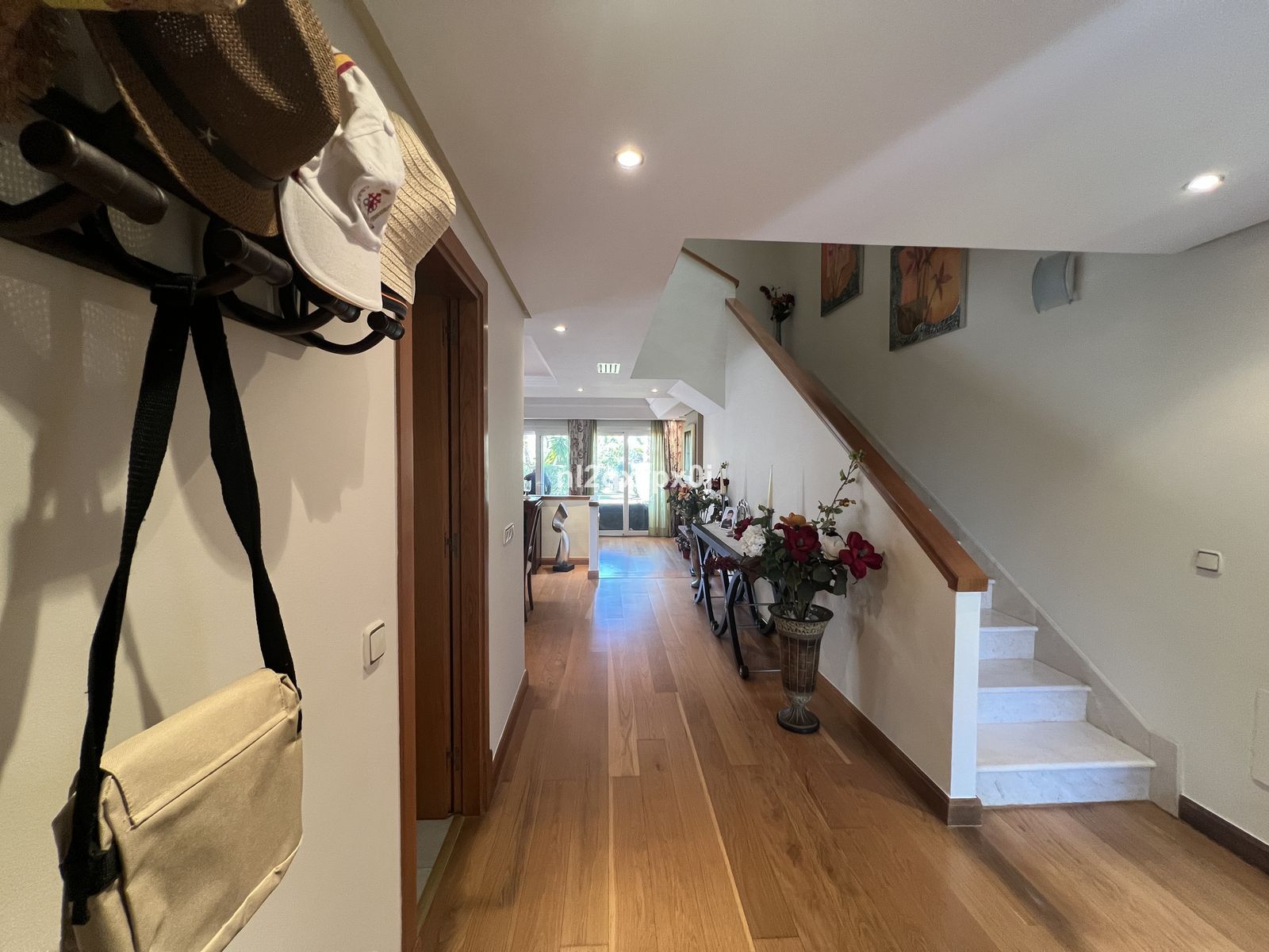 Aceasta cuprinde 3 dormitoare, 3 băi en-suite plus un toaletă pentru oaspeți și are o suprafață construită totală de 337 m² distribuită pe trei etaje. Dormitorul principal dispune de o terasă mare, foarte privată, deoarece casa este la colț și are doar un vecin în dreapta. În plus, există o grădină privată de aproximativ 200 m², ideală pentru grătare și întreținută de comunitate. Proprietatea include de asemenea un garaj mare pentru 8 vehicule, boiler electric și încălzire prin pardoseală în întreaga casă, precum și unități de aer condiționat centralizat și tip split.