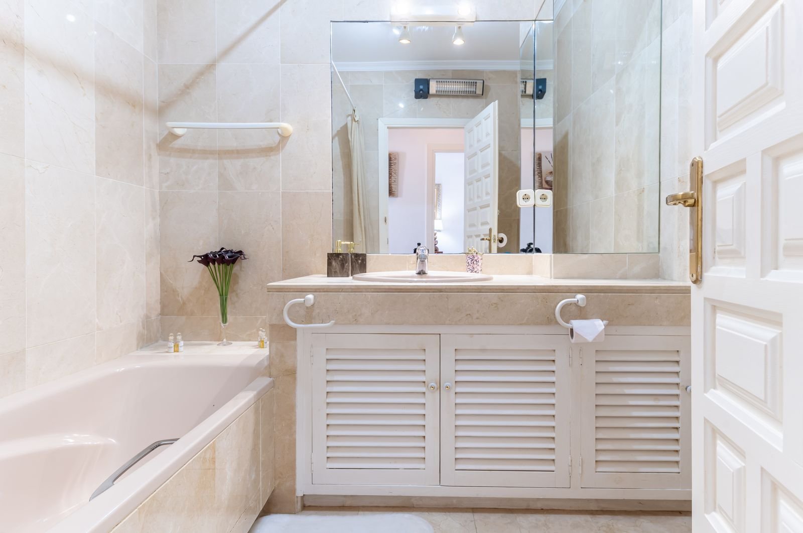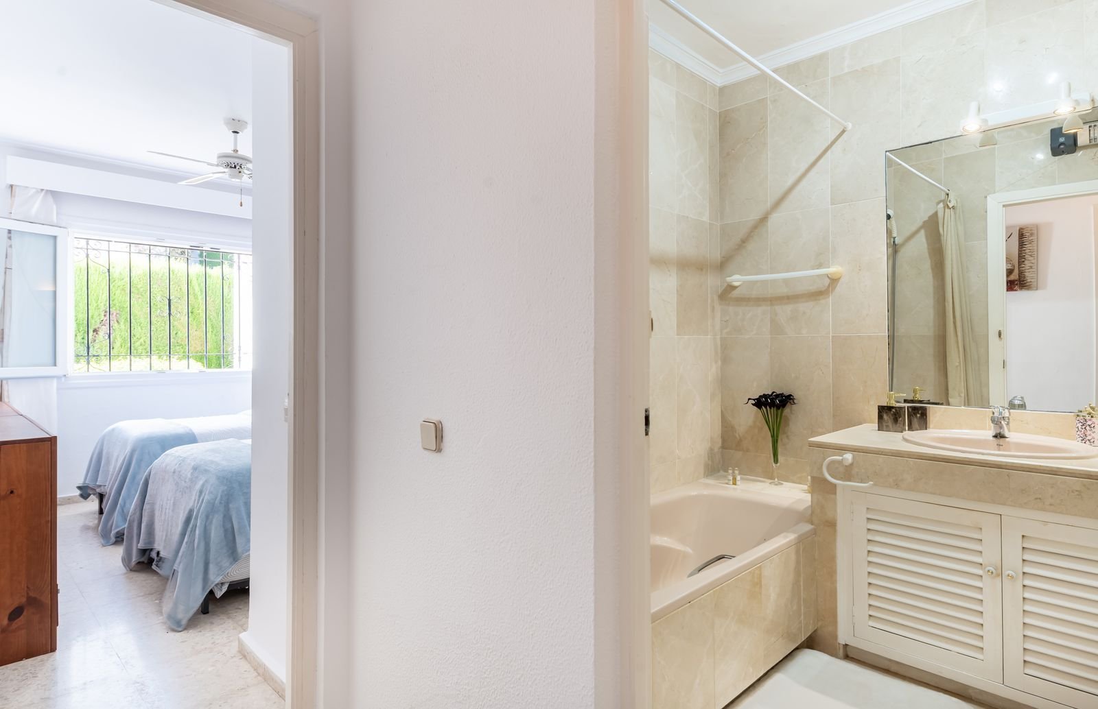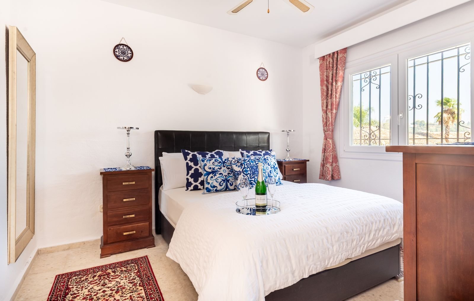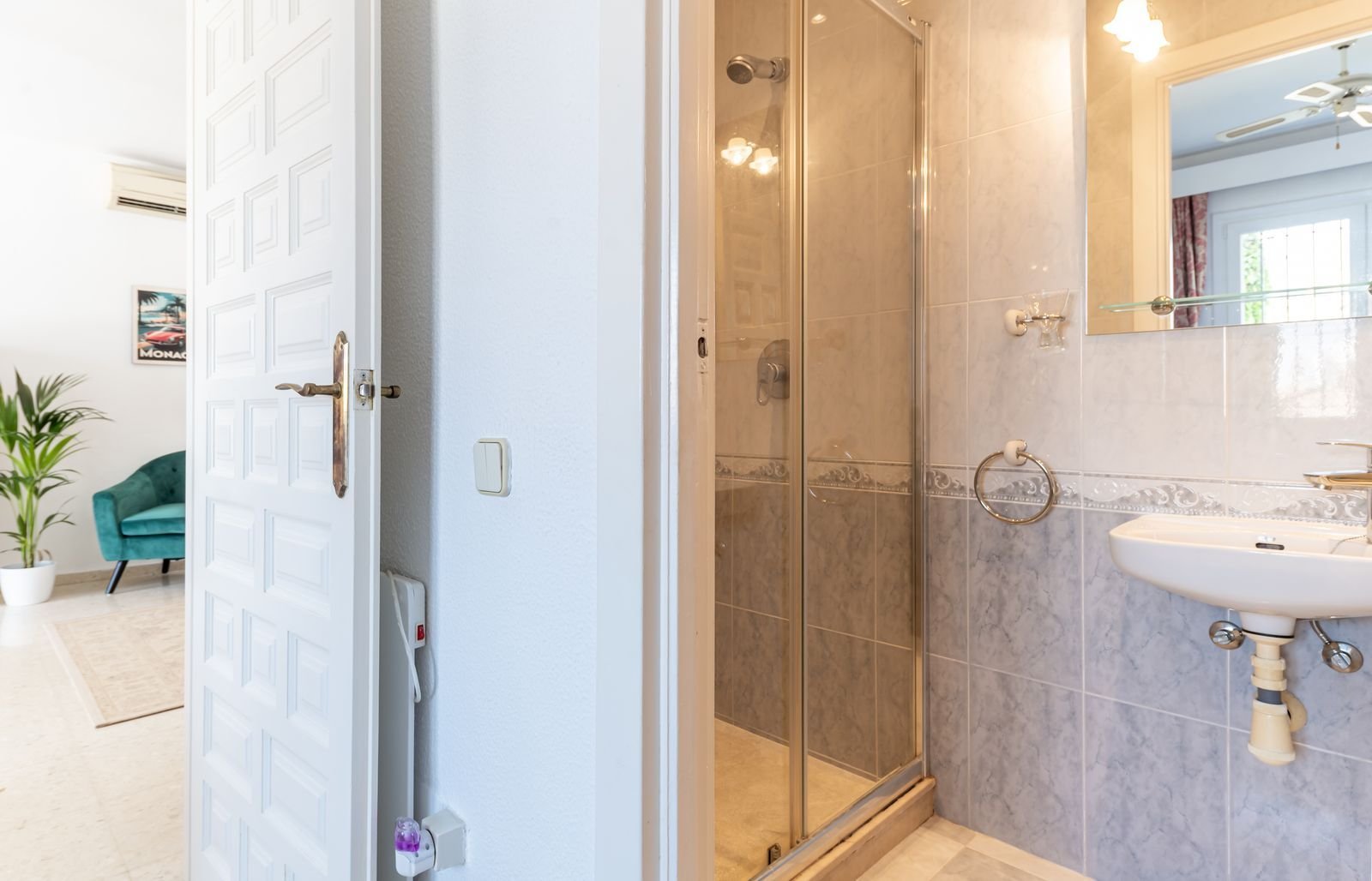 Dormitorul principal cu baie proprie este completat cu mobilier din mahon, cu TV LG, și oferă vederi către frumoasa zonă andaluziană; baia proprie este dotată cu un duș spațios.