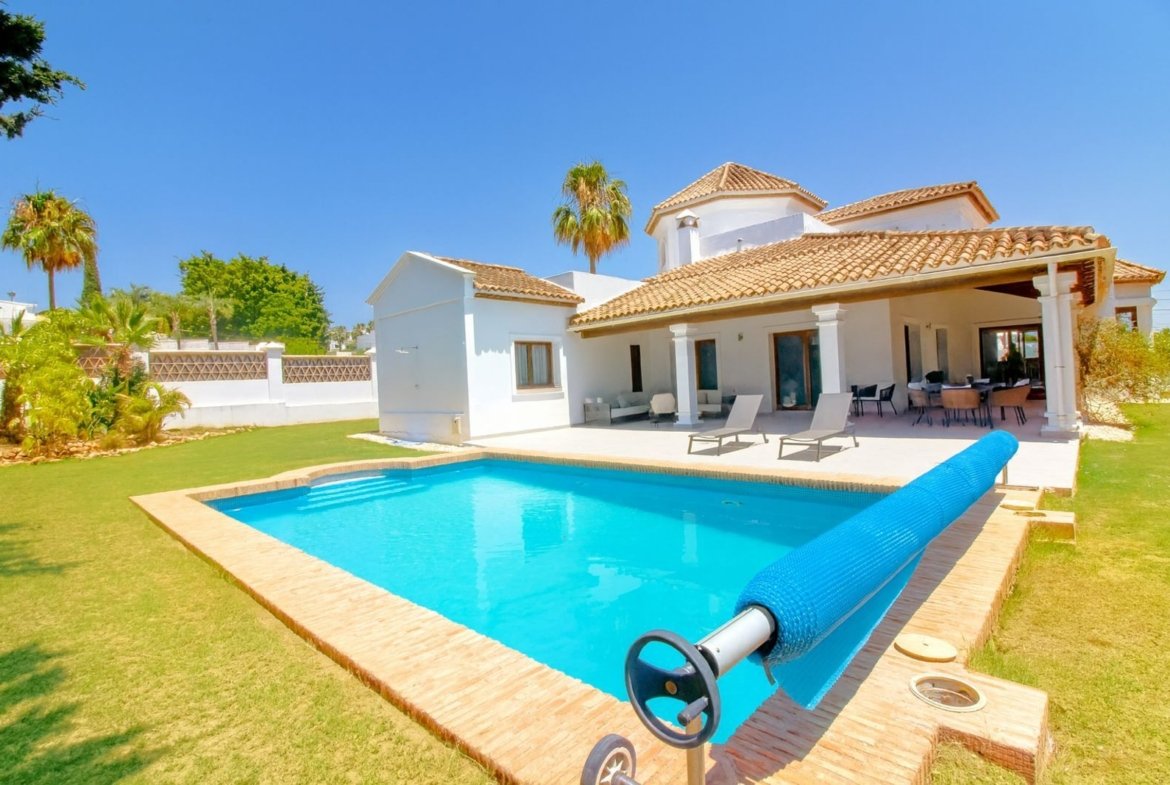 Vila detașată situată într-o zonă rezidențială liniștită și bine stabilită din Estepona, pe un teren de 973 m², cu grădină privată, piscină și mai multe zone acoperite ideale pentru a te bucura de climat pe tot parcursul anului.