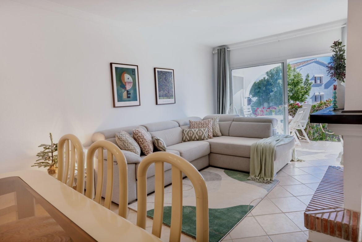 Din cadrul exquisitei grădini cu palmieri andaluzi ai comunității, o scară tradițională în spirală accesează intrarea în proprietate. Din intrare, podeaua din ceramică bej cald completează pardoseala. O bucătărie complet renovată din stejar deschis, cu electrocasnice integrate și suprafețe din granit, este situată convenabil în fața unui salon și a unei zone de dining mobilate remarcabil, completate de un uimitor șemineu original din cărămidă andaluză, înălțat, cu iluminat contemporan opac de culoare verde deschis, cu un stil contemporan delicat.