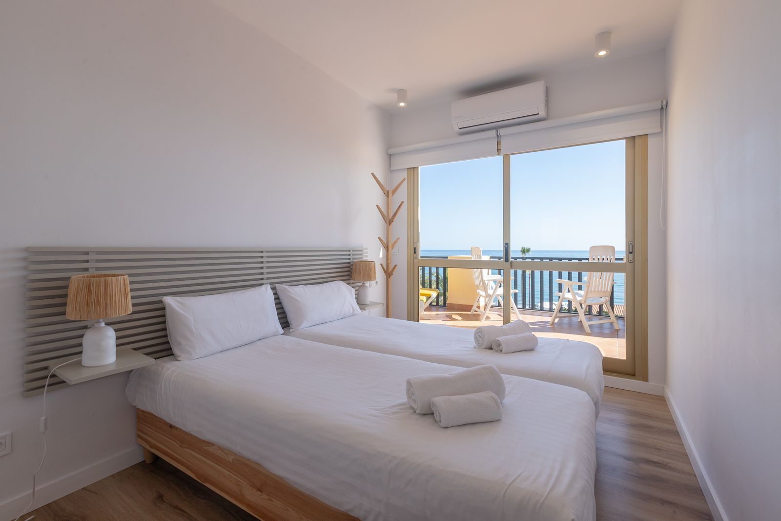 Spectacular beachfront penthouse with panoramic sea views.Two bedrooms, two bathrooms, and a living room, all opening onto a terrace with wonderful, endless sea views. The fully equipped kitchen is integrated into the living room. It has an elevator that takes you directly to the pool and beach access. Recently renovated, it features practical and functional Nordic-style decor, plenty of light, and large windows opening onto a spacious terrace with wonderful views. Independent air conditioning (hot/cold) in all rooms, awnings, electric shutters, etc. Gated parking, private security, and walking distance to shopping centers.