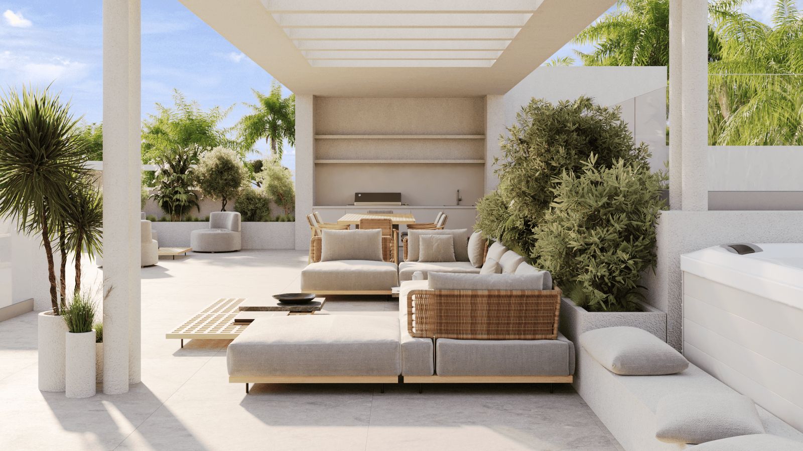 Dezvoltare nouă: Prețuri de la 495.000 € la 850.000 €. [Dormitoare: 2 – 3] [Băi: 2] [Suprafață construită: 128m2 – 383m2]. Complexul rezidențial este situat într-o zonă consolidată de dezvoltare rezidențială cu înălțime redusă (3 etaje), lângă o școală (15 metri), un parc (30 metri), un centru sportiv cu terenuri de fotbal (300 metri) și un spital (300 metri). Se află la câțiva pași de supermarketuri, restaurante, baruri și farmacii. Parcela este situată într-o zonă liniștită, în apropierea terenului de golf (50 metri), fără trafic zgomotos, deoarece situl este situat departe de artera principală de trafic a cartierului, având în același timp o ieșire rapidă către autostrada principală A7: la 5 minute de mers cu mașina de centrul istoric al orașului Estepona și de portul Estepona; la 15 minute de mers cu mașina de Puerto Banus; la 20 de minute de mers cu mașina de Marbella; la 45 de minute de mers cu mașina de aeroportul din Malaga și Gibraltar. Distanța până la plajă este de 1 km. Apartamentele au vedere la mare, la terenul de golf și la munte. Infrastructura dezvoltării: 48 de apartamente (3 etaje); parcare subterană pentru 80 de locuri de parcare și 48 de camere de depozitare. Zonele comune includ o piscină, o toaletă, o zonă de relaxare, o grădină, o parcare subterană (cu un loc de parcare pentru fiecare unitate, 2 locuri de parcare pentru penthouse-uri) și o cameră de depozitare (pentru fiecare unitate). Un arhitect experimentat a fost implicat în realizarea proiectului, acesta a pregătit designul arhitectural și va efectua supervizarea autorială și arhitecturală. Puncte forte ale proiectului: – Locația complexă – Planuri de apartamente bine gândite, care sunt calitativ diferite de cele ale concurenților – Terase moderne și mari pentru fiecare apartament și designul lor arhitectural – Prețuri competitive Începerea construcției în noiembrie 2024 și finalizarea în noiembrie 2026.