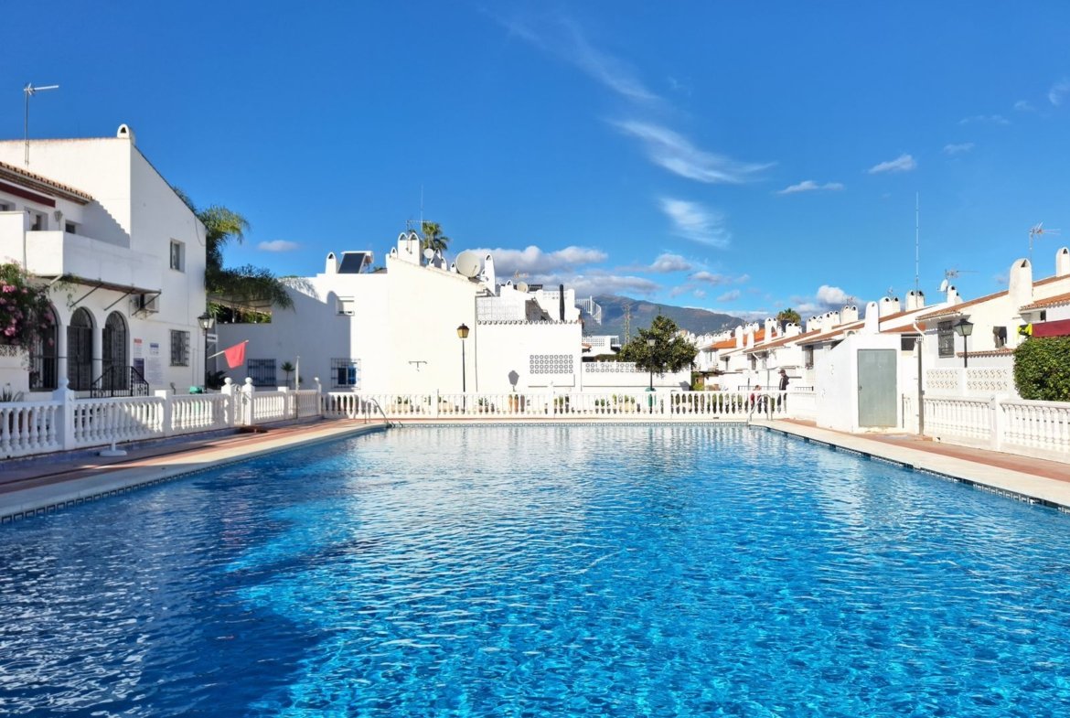 Această casă semi-detașată bine dotată, cu 2 niveluri, 2 dormitoare și 2 băi, este situată într-o urbanizare închisă, la granița dintre Marbella și Estepona, la o distanță ușor accesibilă de plajă, magazine, transport, școli etc.