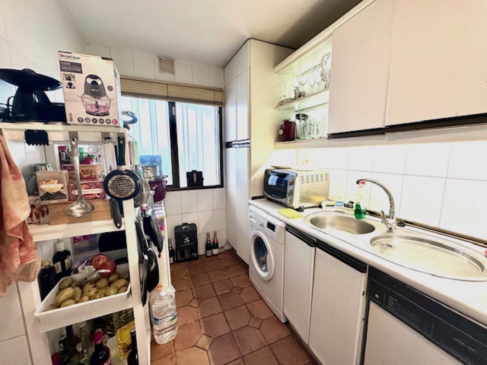 Hol de intrare, cu o bucătărie mare pe partea stângă.