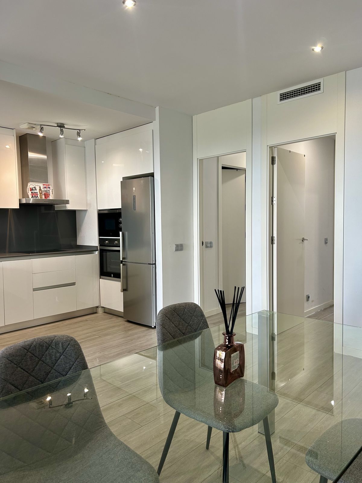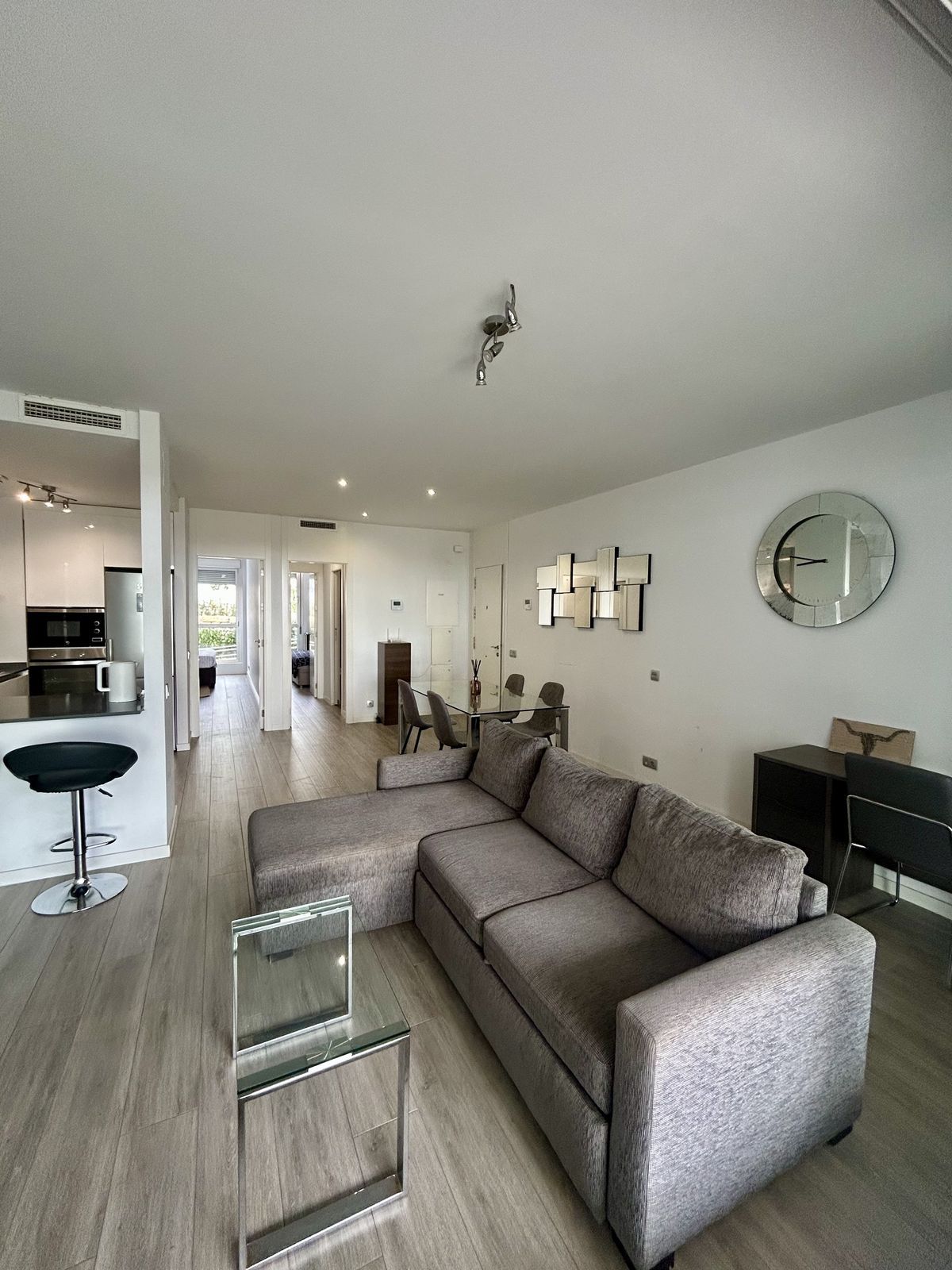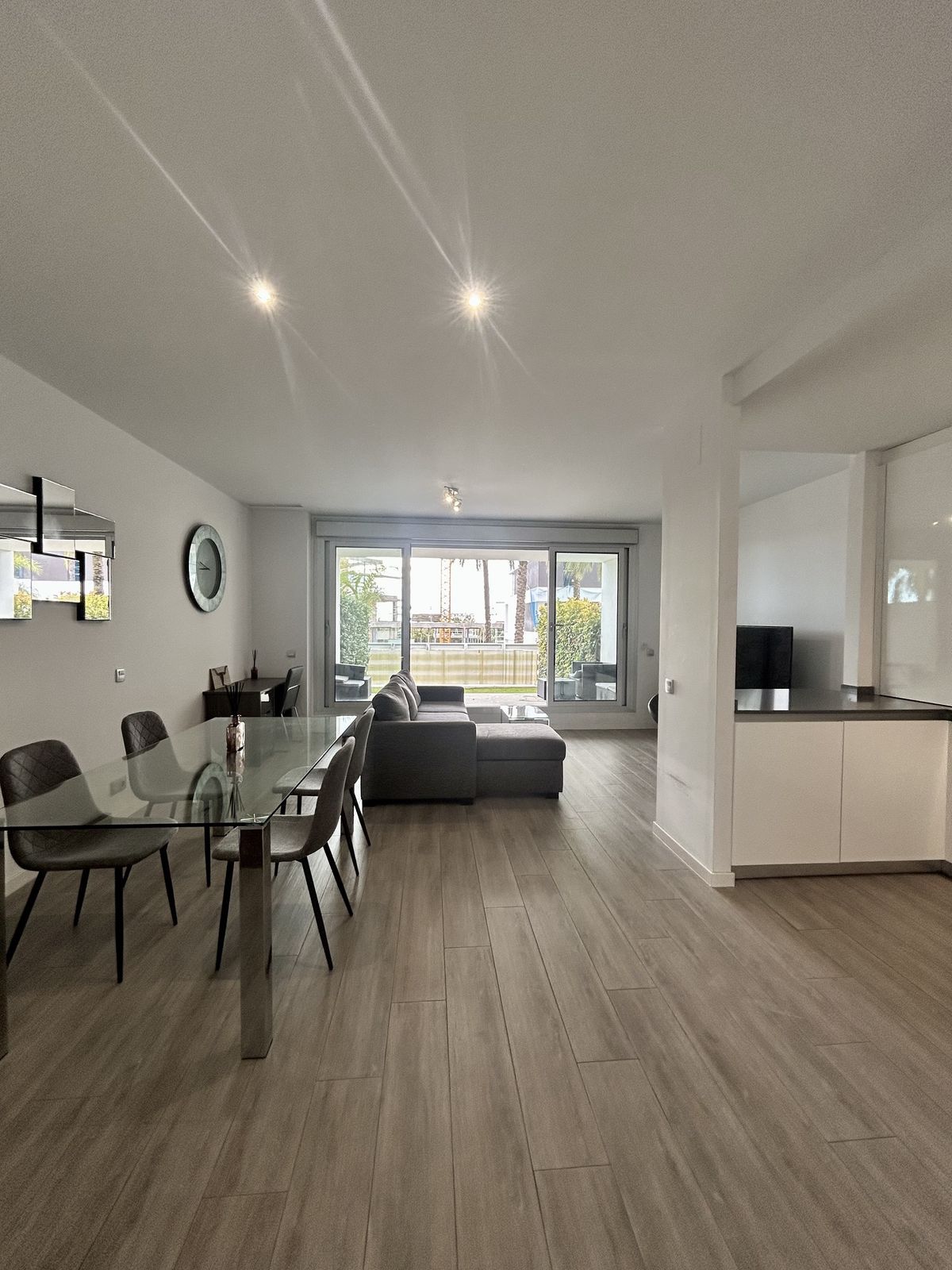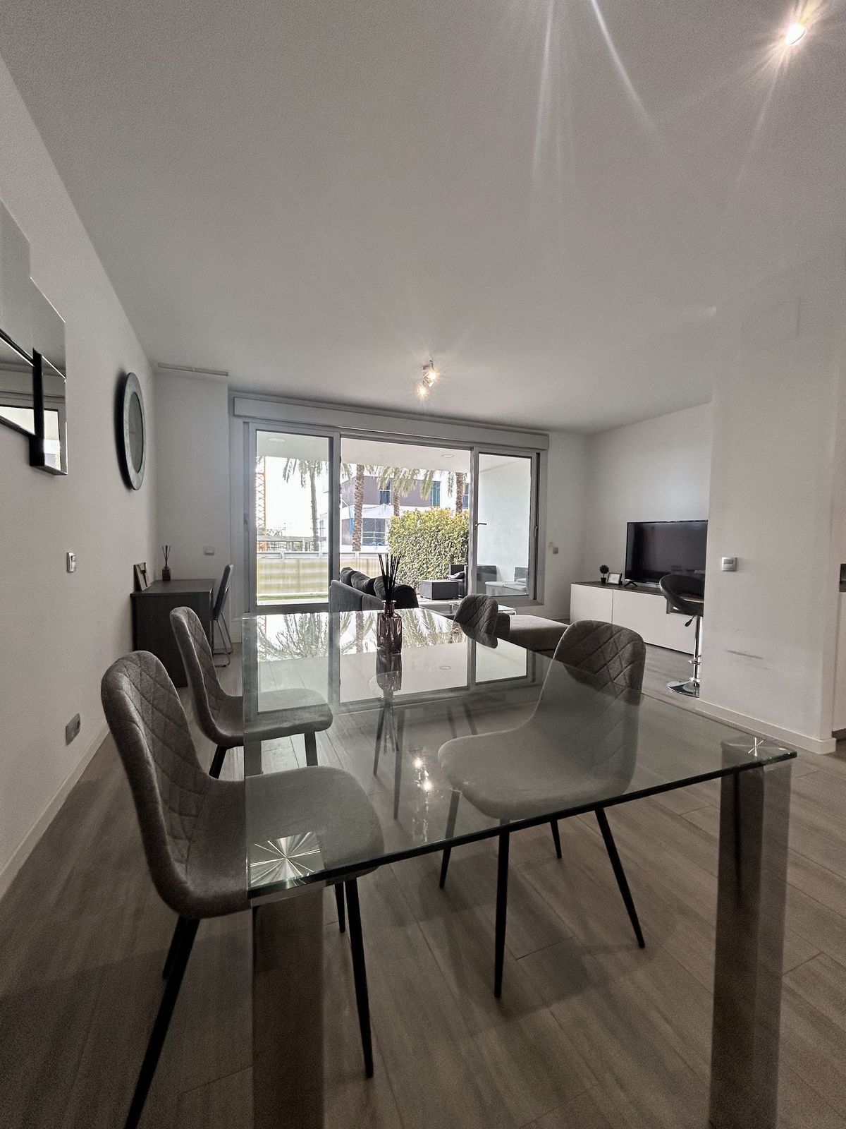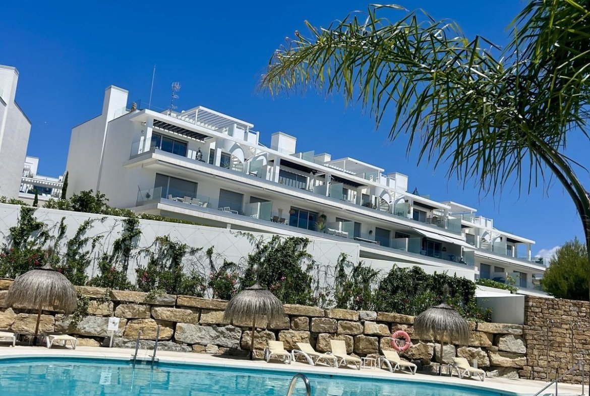Apartament modern situat în fermecătorul sat Cancelada din Estepona. Apartamentul cu grădină constă într-un living și o zonă de dining luminoase, având acces la o terasă privată orientată spre sud de 18 mp și o grădină de 30 mp. Bucătăria open space este complet echipată cu aparate de înaltă calitate. Cele 2 dormitoare au băi proprii și dulapuri încorporate. Complexul este închis, cu servicii de securitate și concierge și dispune de 2 piscine, piscină pentru copii și zonă de joacă. La câteva minute de mers pe jos de magazine, restaurante și servicii și la doar 5 minute cu mașina de plajă și terenul de golf Los Flamingos.
