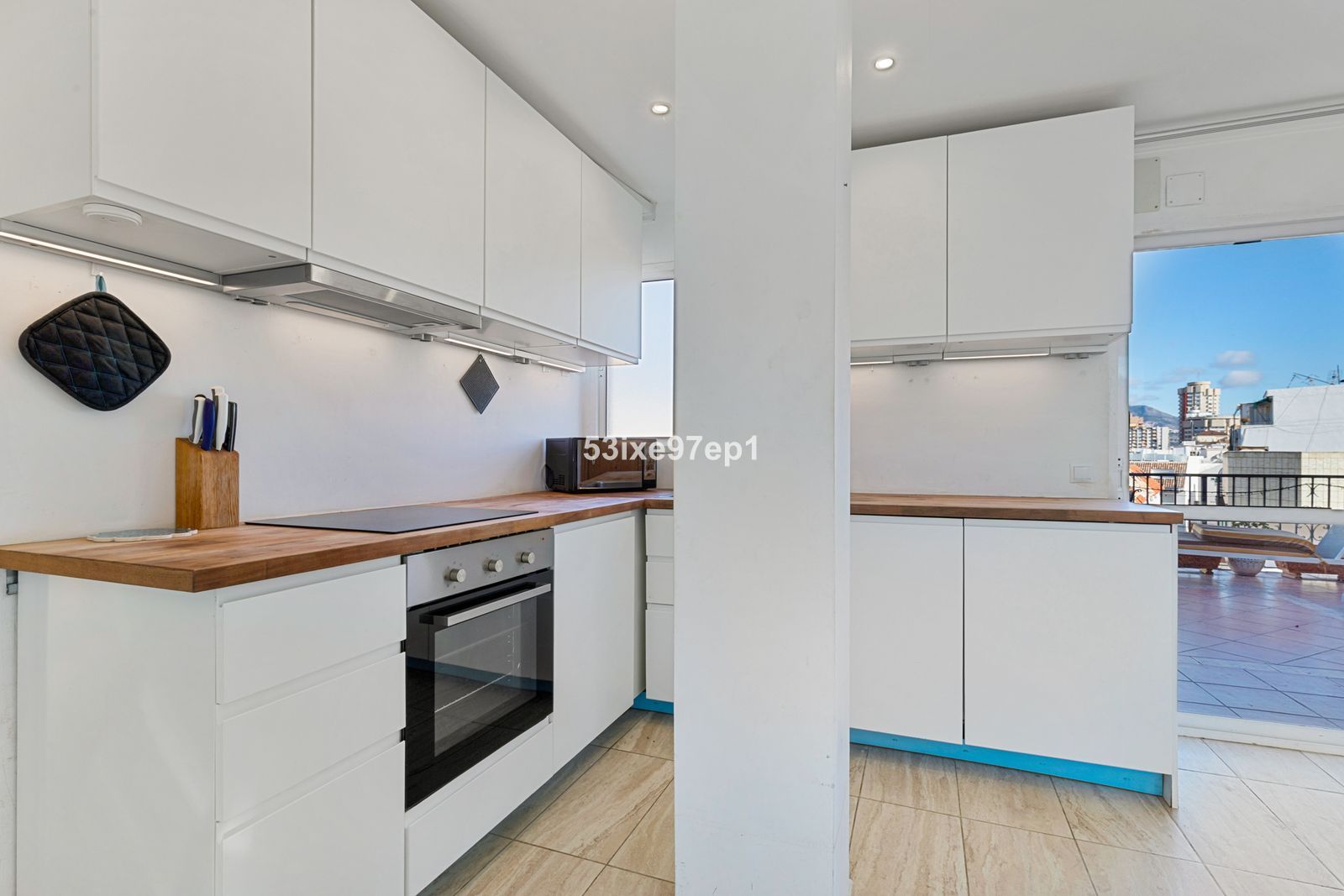 Apartamentul oferă două dormitoare cu aer condiționat și o baie recent renovată, unde se află mașina de spălat. Bucătăria și livingul sunt integrate și sunt foarte luminoase. Există, de asemenea, un aer condiționat în living.