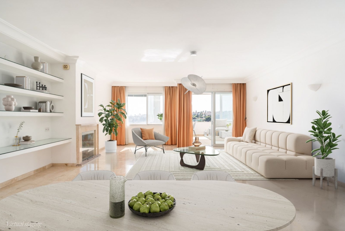 Bright and spacious apartment with panoramic views, including partial sea views and beautiful mountain scenery overlooking the golf course and across the orange groves, gently bordered by the river . Located in a very well-maintained gated community in Guadalmina Alta, this property offers an unbeatable combination of tranquility and convenience — close to amenities, golf, and the beach.