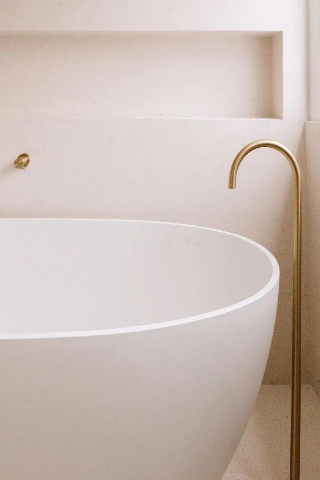 Baie principală cu chiuvetă dublă, dulapuri mari și o zonă elegantă umedă cu duș și cadă de baie freestanding.