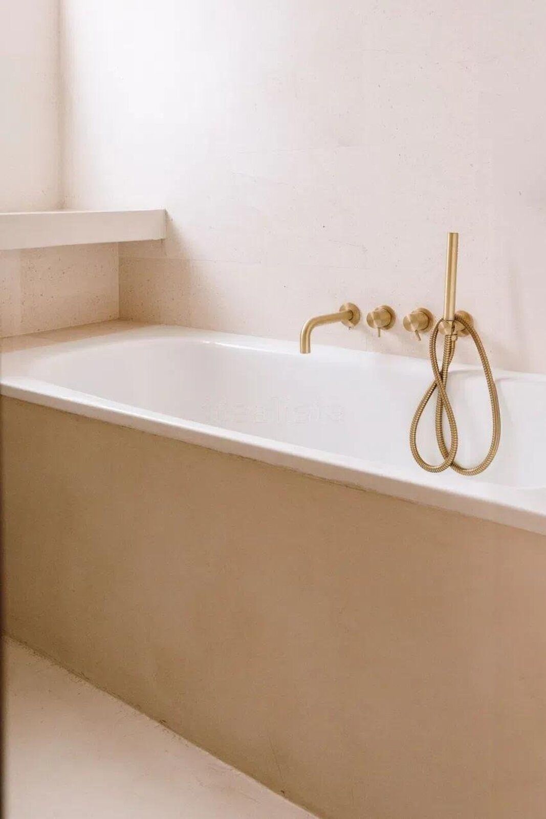 Patio de intrare cu finisaj din microciment, zonă de living însorită pe tot parcursul zilei, jardiniere și duș exterior cu apă caldă și rece.