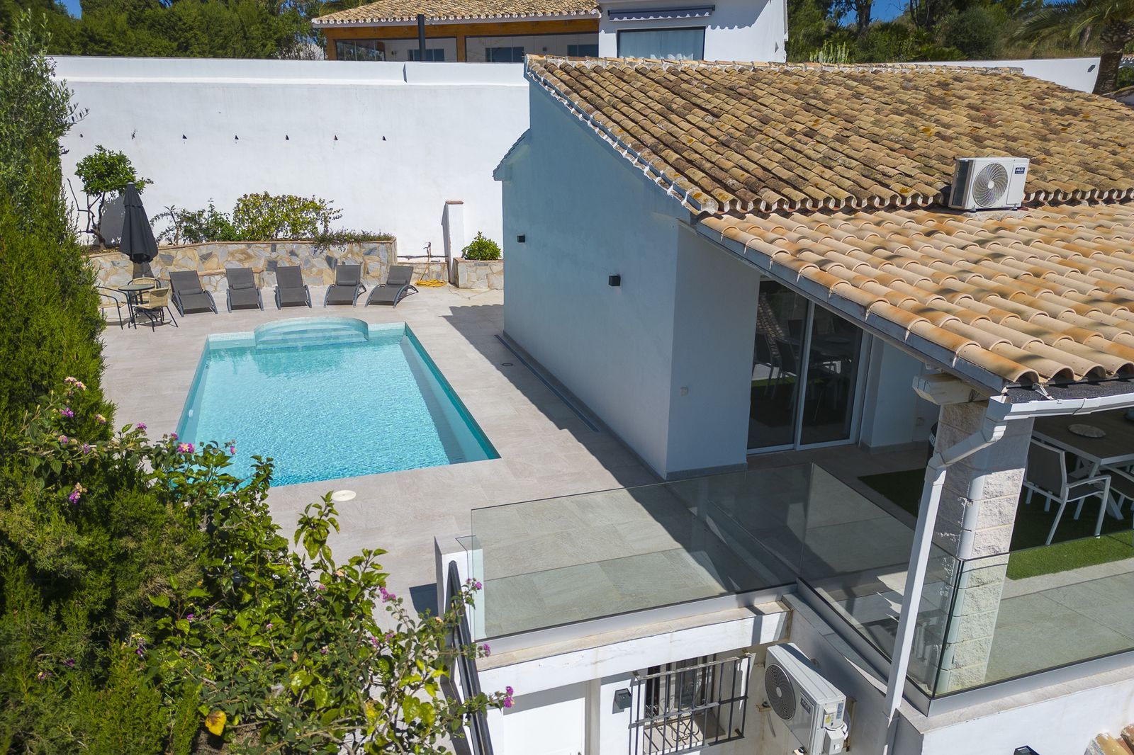 Descoperiți combinația perfectă între farmecul tradițional și eleganța modernă în această vilă frumos renovată cu 5 dormitoare, situată într-o zonă liniștită și bine stabilită, aproape de La Cala de Mijas. Bucurați-vă de priveliști panoramice spectaculoase ale Mării Mediterane și ale terenului de golf din apropiere din această casă uimitoare care combină stilul rustic-modern cu atracția atemporală a unei vile spaniole clasice. Proprietatea a fost actualizată cu gândire, având interioare proaspete și contemporane, păstrând în același timp caracterul autentic spaniol, creând o atmosferă caldă și primitoare în întreaga casă. Situată într-o cul-de-sac liniștită, vila oferă o versatilitate excepțională a stilului de viață și generează în prezent venituri puternice din închirieri datorită licenței sale turistice. De la poarta principală, o ușoară urcare duce la primul dintre cele două spații de locuit independente. Acest apartament de la parter dispune de un living confortabil cu balcon, o bucătărie complet utilată, două dormitoare spațioase și o baie – perfect pentru oaspeți sau închirieri pe termen scurt. Pe partea laterală a proprietății, un al doilea set de trepte duce la piscina încălzită, ascunsă într-un colț privat al terenului cu priveliști liniștite asupra mării. Dincolo de piscină, reședința principală vă întâmpină cu un hol luminos care se deschide într-un spațiu generos de living și dining open-plan, o bucătărie independentă cu facilități de spălătorie și un lounge luminos cu șemineu și balcon Juliette. Lounge-ul se deschide fără întreruperi pe o terasă acoperită generoasă cu priveliști uimitoare asupra mării, terenului de golf și vegetației din jur. Casa principală include, de asemenea, trei dormitoare de dimensiuni generoase și două băi, inclusiv o suită principală cu baie proprie. Fiecare dormitor se bucură de priveliști frumoase asupra mării și de acces direct la o terasă mare comună, perfectă pentru cafeaua de dimineață sau apusurile de seară. În exterior, o zonă de relaxare și divertisment pe două niveluri dispune de un grătar, locuri de șezut umbrite și spațiu amplu pentru organizarea de evenimente. Alte caracteristici includ o mică cameră de depozitare și parcare privată off-street pentru două mașini. Indiferent dacă căutați o reședință permanentă liniștită, o retragere de vacanță elegantă sau o investiție cu performanțe ridicate, această vilă excepțională oferă tot ce este mai bun în viața de coastă pe Costa del Sol.