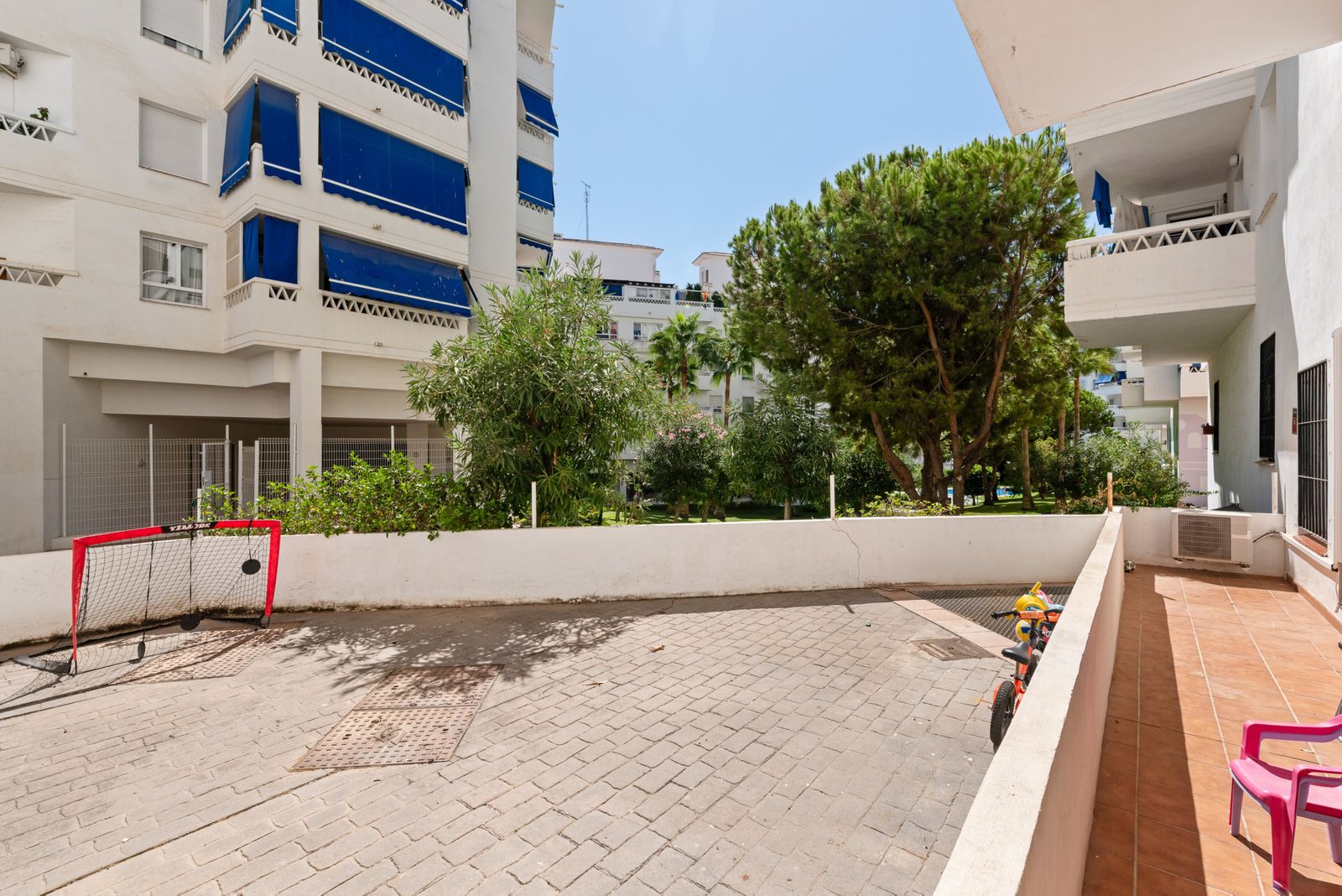 Livingul este de dimensiuni bune și are potențialul de a adăuga o zonă de dining. Există acces direct la mica terasă și, la rândul său, acces la grădinile comunității.