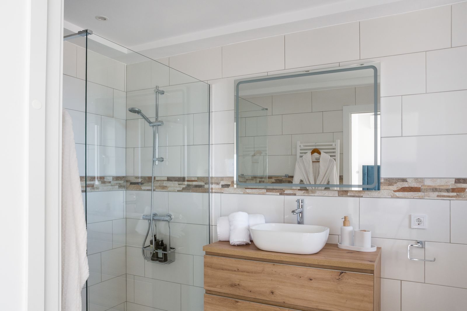 The second double bedroom also has fitted wardrobes and access to the upper terrace whilst the third bedroom is also a generous double. There is also a family shower room serving the 2 double bedrooms.
