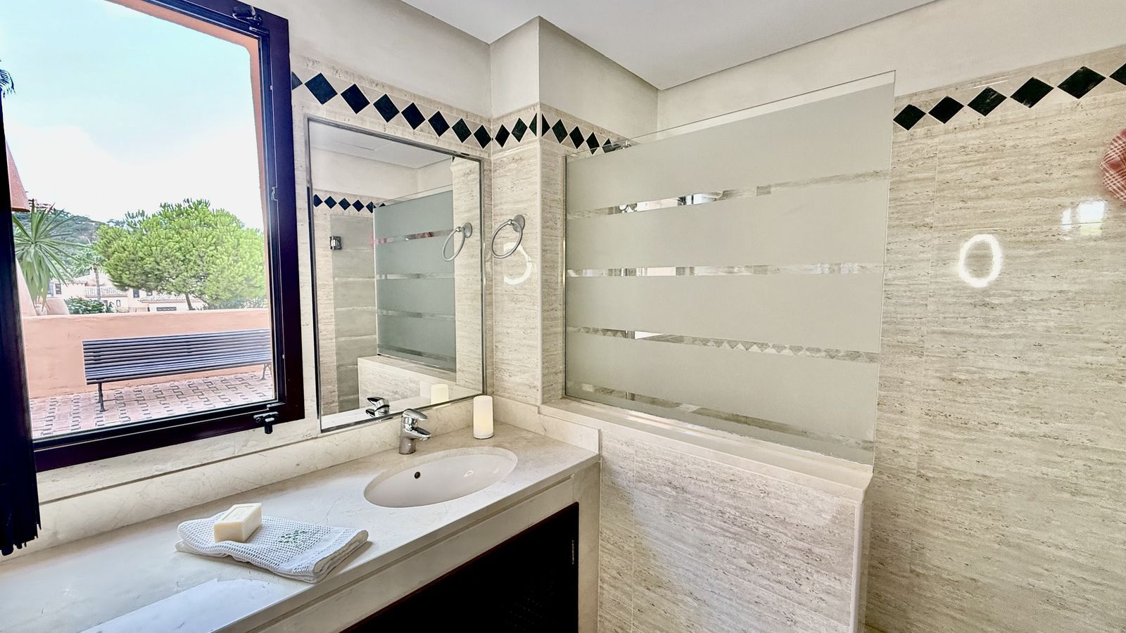 OPORTUNITATE UIMITOARE – apartament frumos cu 2 dormitoare și 2 băi situat într-o comunitate închisă care beneficiază de acces la facilități de top, inclusiv grădini frumos întreținute, mai multe piscine, o sală de sport, terenuri de tenis și paddle, și chiar un teren de golf privat cu 9 găuri – situat în colinele liniștite ale La Mairena, Elviria. Înconjurat de natură și oferind vederi panoramice spectaculoase, acest apartament elegant combină liniștea și intimitatea cu confortul de a fi la doar câteva minute cu mașina de Marbella și plajele din Elviria.