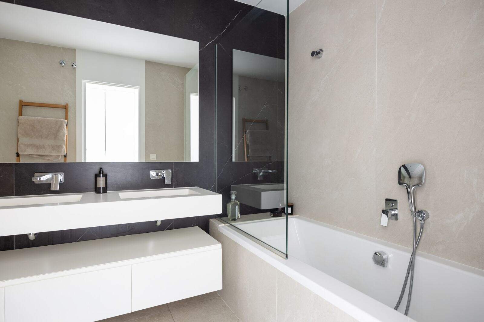 Zona de living spațioasă este umplută cu lumină naturală, îmbunătățită de o fereastră laterală rară, întâlnită doar în apartamente selecte. O bucătărie mare, complet echipată cu aparate Bosch și Miele, inclusiv un răcitor de vin încorporat, face ca servirea mesei și divertismentul să fie fără efort, în timp ce vânzarea proprietății include toate vesela, sticlaria și ustensilele de gătit. Mobilierul Jacobsen, integrat cu stil în întreaga proprietate, este de asemenea inclus în preț.