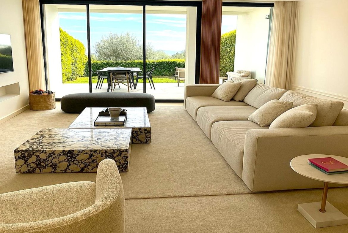 Spațiul de living este îmbunătățit de un șemineu modern pe bioetanol, adăugând căldură și caracter. Ușile mari glisante de la podea până la tavan se deschid spre o terasă spațioasă parțial acoperită, ideală pentru mese în aer liber, grătare și o zonă de relaxare, totul în timp ce te bucuri de vederi neîntrerupte asupra mării și terenului de golf.