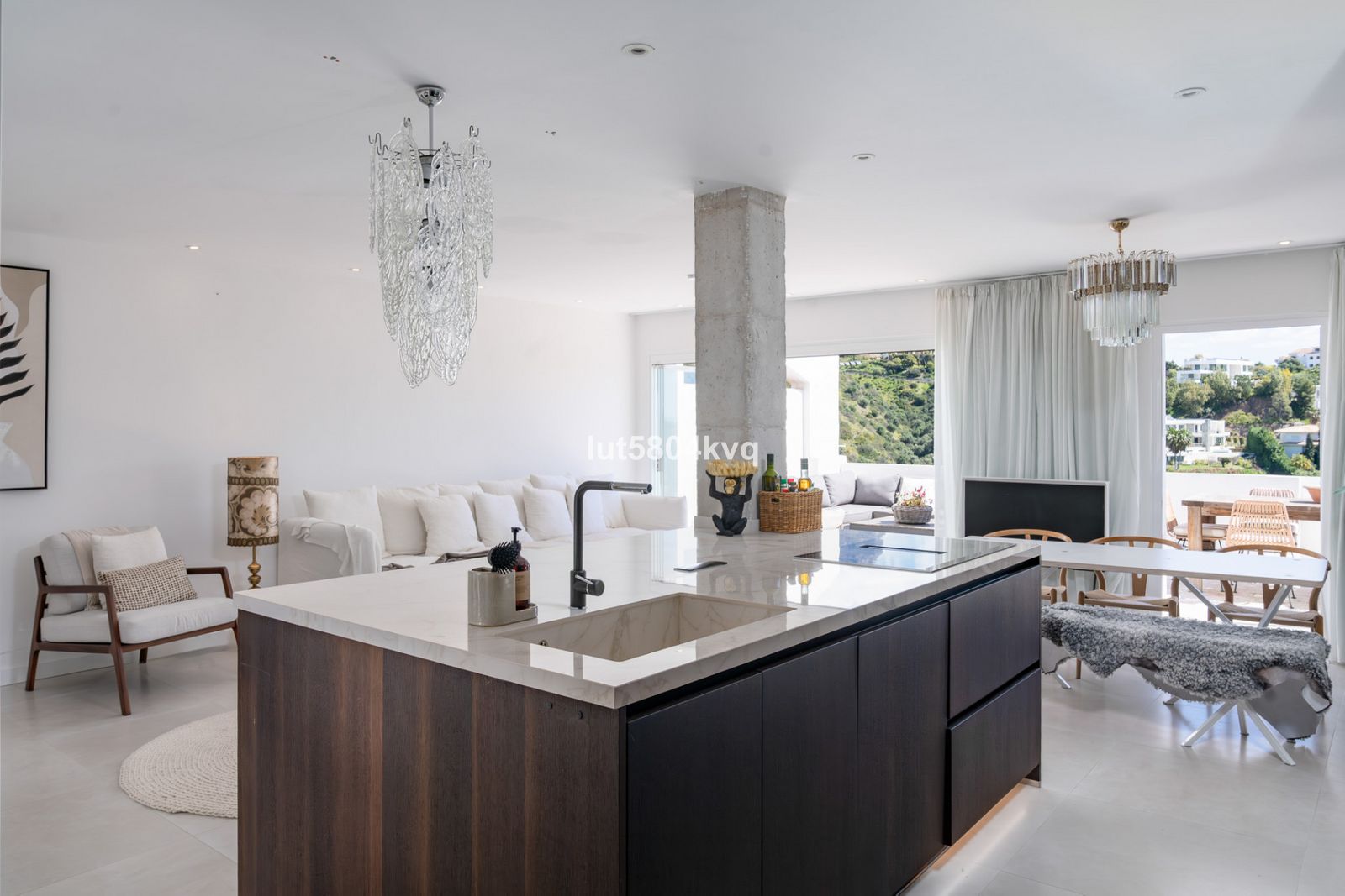 Pregătiți-vă să fiți impresionat de priveliștile uluitoare care cuprind atât majestuosul munte La Concha, cât și strălucitorul Marea Mediterană. Fie că savurați cafeaua de dimineață sau distrați oaspeți, peisajul este cu adevărat remarcabil. Pentru confortul dumneavoastră, proprietatea include parcare securizată într-un carport, asigurând acces ușor.