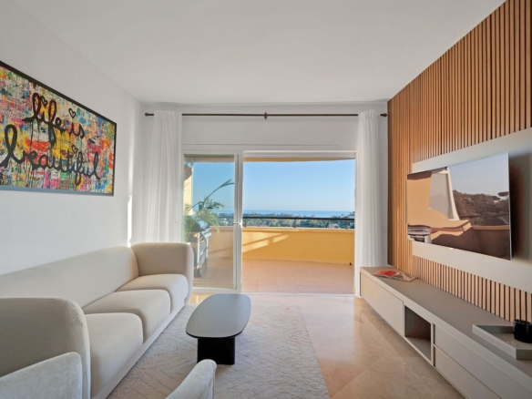 Apartamentul La Corniche este un apartament de lux cu 2 dormitoare în inima Valea Golfului Nueva Andalucía. Această comunitate închisă oferă liniște și intimitate, fiind aproape de golf de clasă mondială, restaurante rafinate și Puerto Banús. Locuința se bucură de vederi de 180 de grade asupra Mării Mediterane și muntelui La Concha, având un design care se simte ca un penthouse. Apartamentul are 190 m² de spațiu de locuit, inclusiv o terasă mare care poate fi închisă iarna.