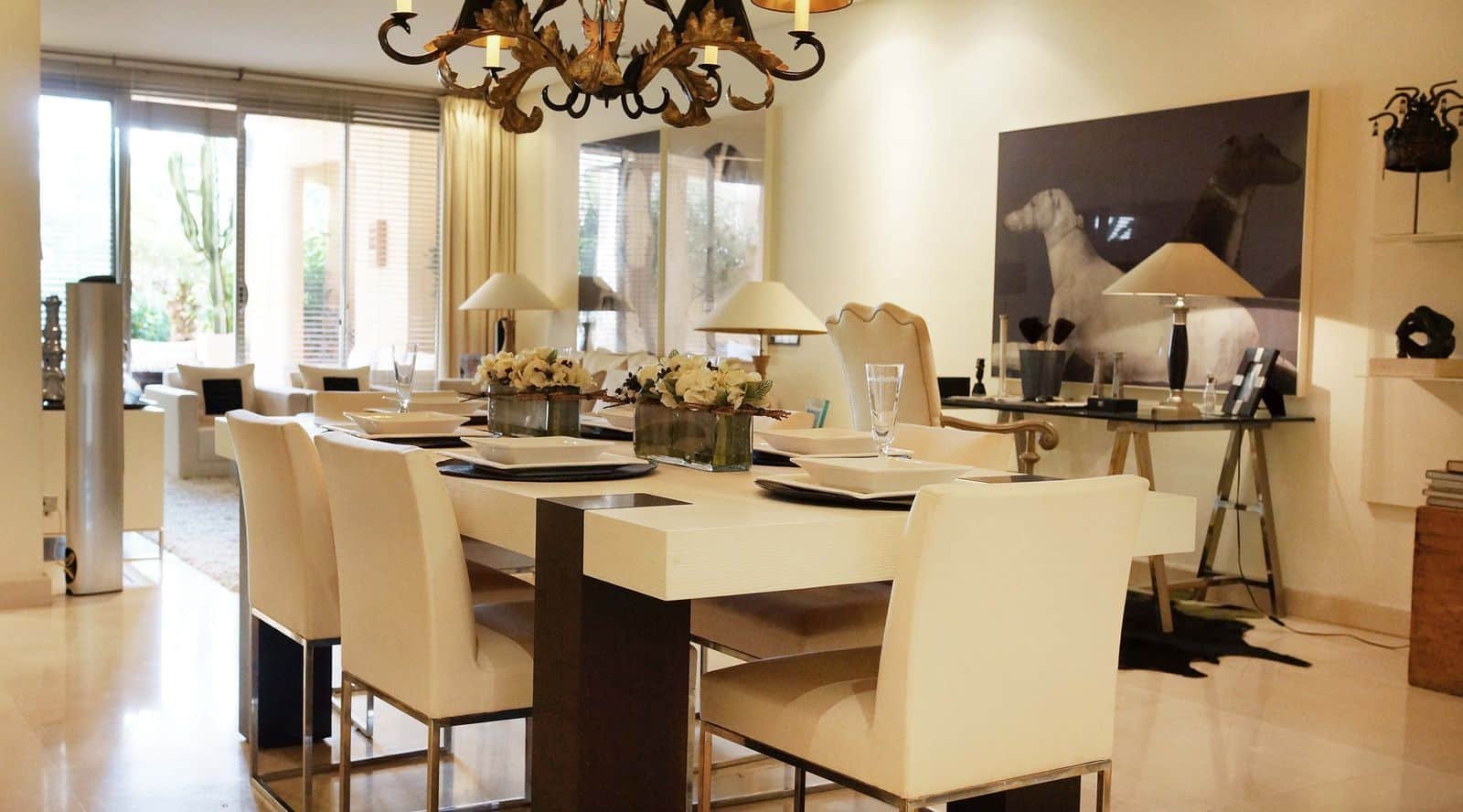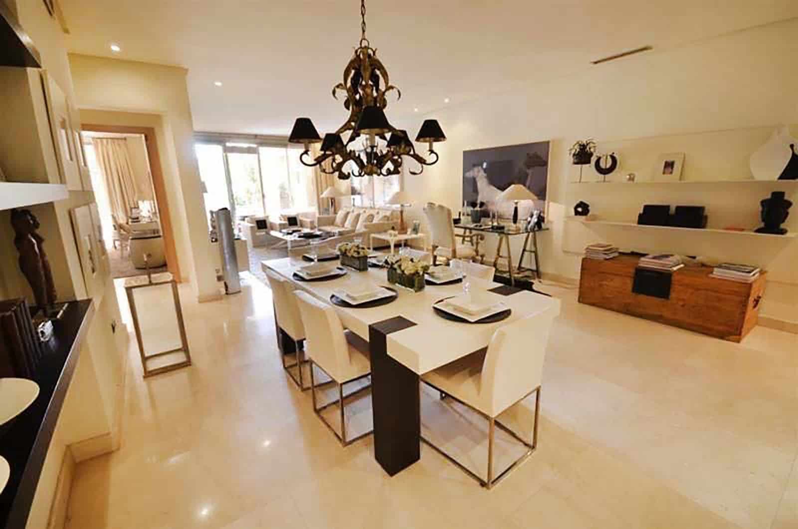 Un apartament colțar, cu trei dormitoare, orientat spre sud și foarte privat, situat la parter în renumitul Mansion Club, o comunitate exclusivă cu acces controlat, așezată la poalele Sierra Blanca. Această dezvoltare, proiectată de arhitectul de renume Melvin Villarroel, este înconjurată de grădini tropicale amenajate cu alei, lacuri, pergole, mozaicuri și alte caracteristici excepționale care conferă acestei dezvoltări o notă distinctă andaluză. Spațiul de cazare cuprinde un hol de intrare; un living și o sală de mese spațioase cu feronerie franceză care duc la o terasă acoperită; o bucătărie deschisă, complet utilată; o cameră pentru utilități; două dormitoare pentru oaspeți care împărtășesc o baie; dormitorul principal cu baie proprie dotată cu jacuzzi. Finisaje și design de înaltă calitate, cu încălzire prin pardoseală în întreaga unitate, aer condiționat cald și rece și un sistem de interfon video. Complexul se află la doar 20 de minute de mers pe jos de Turnul de Cupru de pe Milele de Aur și de orașul Marbella.