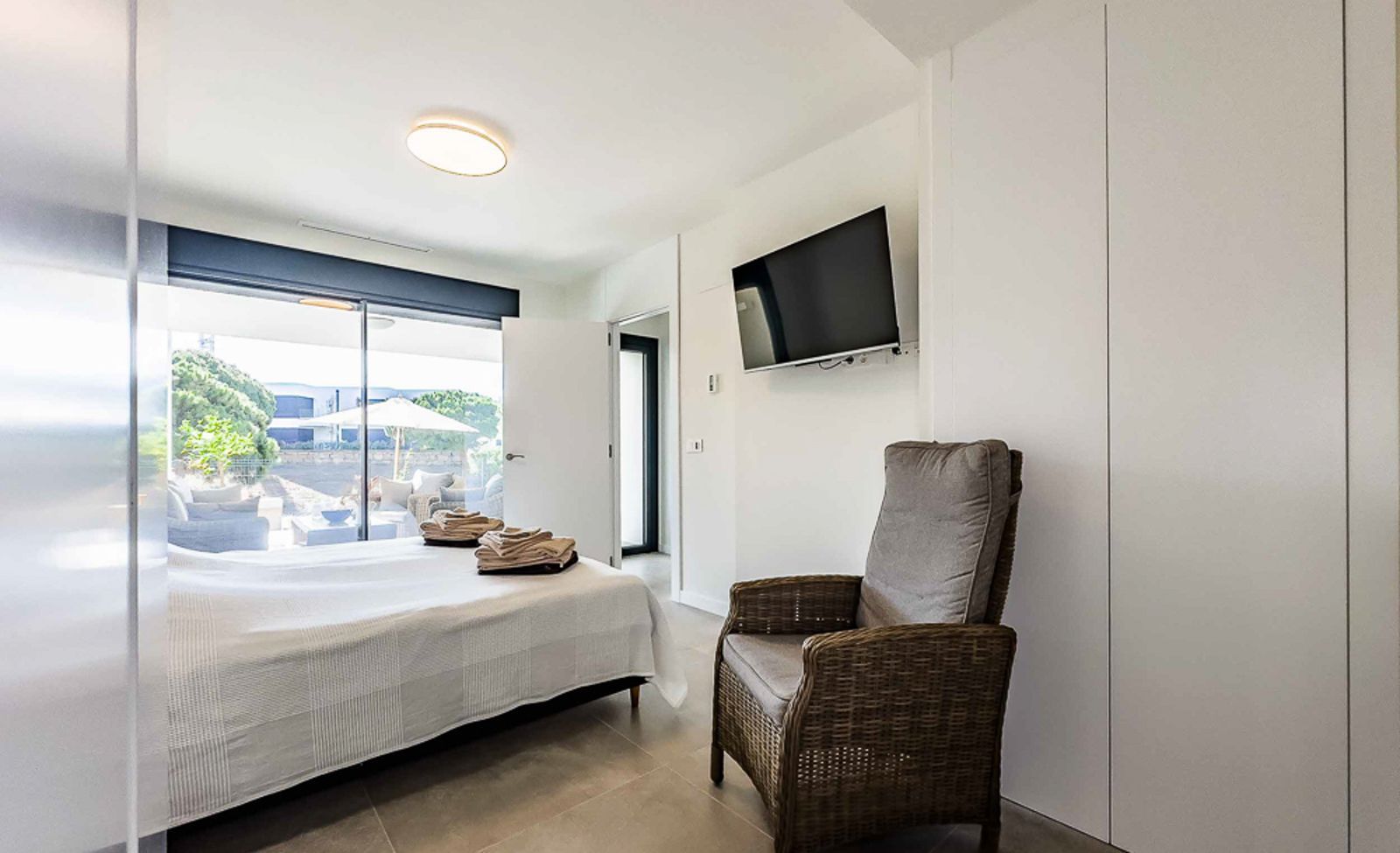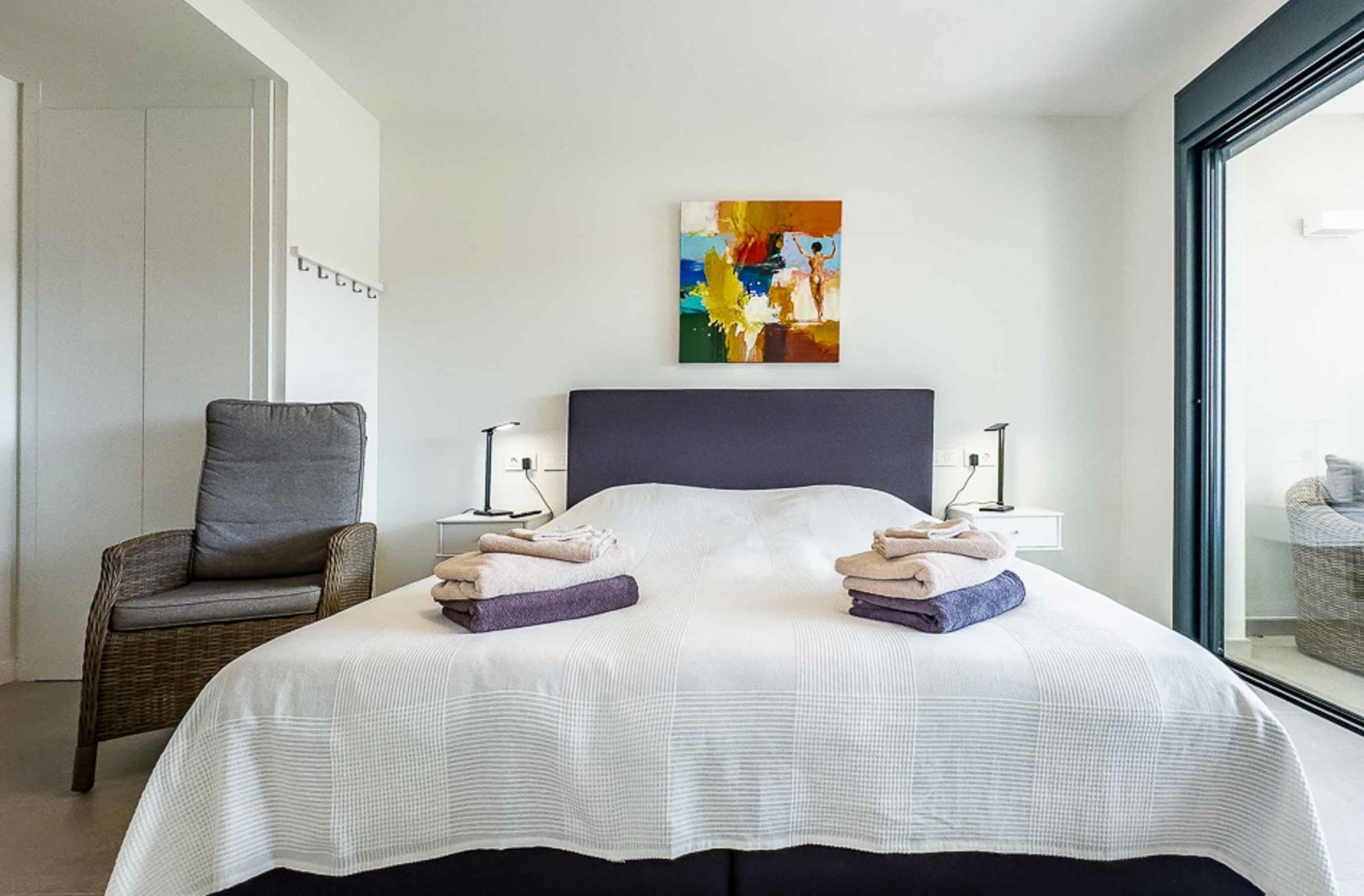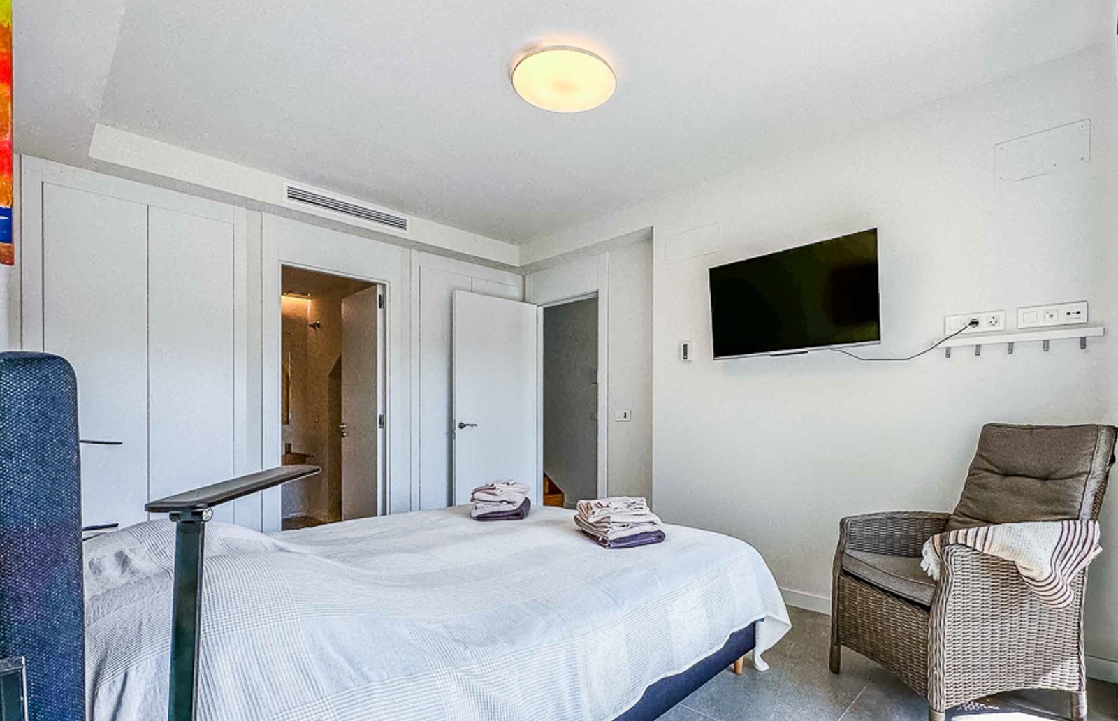 Întinsă pe trei niveluri și 181 m², casa oferă spații luminoase, feronerie de la podea până la tavan și vederi uimitoare asupra Mediteranei, terenului de golf și munților. Dispune de trei dormitoare spațioase cu băi proprii, o bucătărie complet utilată, zone de living și dining open-plan, piscină privată și mai multe terase cu o suprafață totală de 160 m² — inclusiv un solariu pe acoperiș pentru apusuri de soare de neuitat.