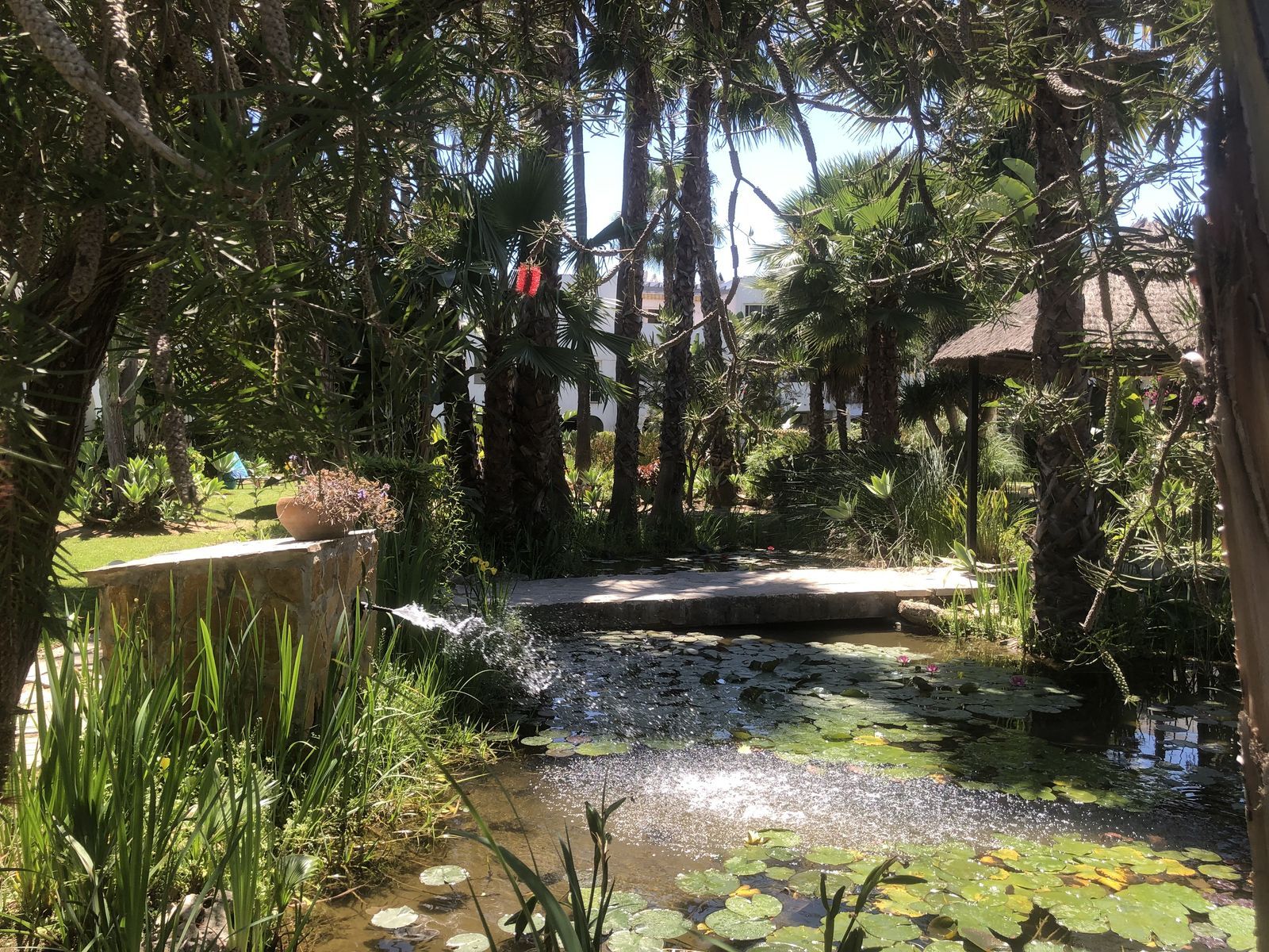 Grădini mature și liniștite cu iazuri serene duc la o zonă comună de piscină uimitoare—perfectă pentru relaxare pe tot parcursul anului.