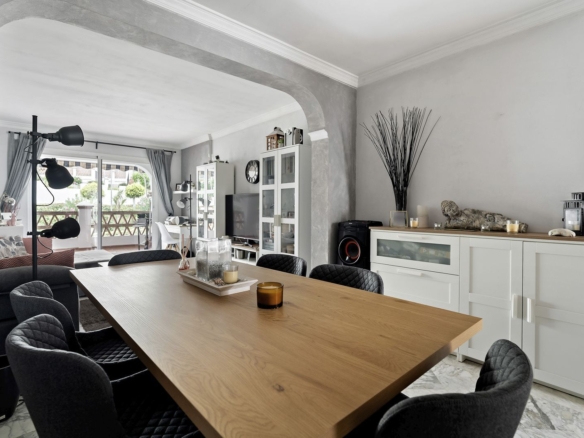 Descoperiți noua dumneavoastră casă în Mijas Golf! Acest apartament spectaculos cu colț, situat vizavi de clubul de rachete, oferă combinația perfectă între confort și stil. Cu 142 m² de spațiu de locuit, dispune de două dormitoare spațioase, unul cu acces direct la o terasă încântătoare închisă, ideală pentru a fi folosită pe tot parcursul anului. Cele două băi complete, una en suite și ambele cu vedere la exterior, asigură intimitate și funcționalitate.