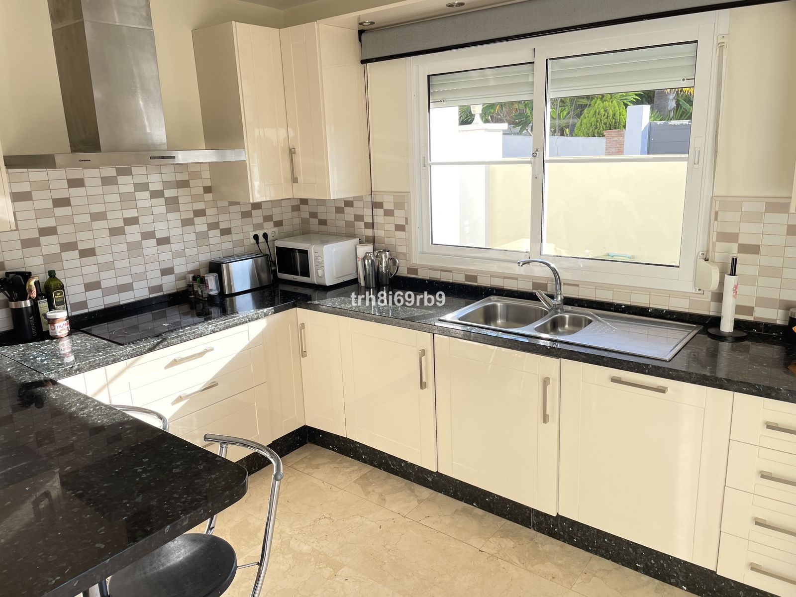 Descoperiți această uimitoare vilă cu 3 dormitoare și 3 băi, care oferă un amestec perfect de lux și confort. Situată la doar o plimbare scurtă de plajă, această proprietate este un refugiu ideal pentru cei care caută un stil de viață la malul mării. Salonul spațios vă întâmpină cu abundență de lumină naturală, în timp ce bucătăria modernă complet utilată este perfectă pentru pasionații de gătit. Parterul dispune de un dormitor cu baie proprie, făcându-l potrivit pentru persoanele cu probleme de mobilitate. La etajul 1, dormitorul principal se mândrește cu o baie mare cu baie proprie, completată cu atât o cadă, cât și un duș walk-in, și se deschide către o terasă orientată spre sud, unde vă puteți bucura de soare. Un al doilea dormitor pentru oaspeți la etajul întâi include, de asemenea, o baie proprie cu un duș walk-in. Ieșiți afară pentru a vă bucura de piscina privată, care are preinstalare pentru încălzire, asigurându-vă distracție pe tot parcursul anului. Grădina și zona piscinei se bucură de soare pentru cea mai mare parte a zilei, creând un spațiu exterior primitor. Satul local Cancelada este la doar 10 minute de mers pe jos peste podul pietonal, cu o varietate de baruri, restaurante, bănci și supermarketuri. Cu parcare off-road disponibilă și situată pe partea de plajă a Noii Mile Aurii, această vilă este perfect poziționată între Estepona și San Pedro, făcând-o convenabilă pentru toate nevoile dumneavoastră.