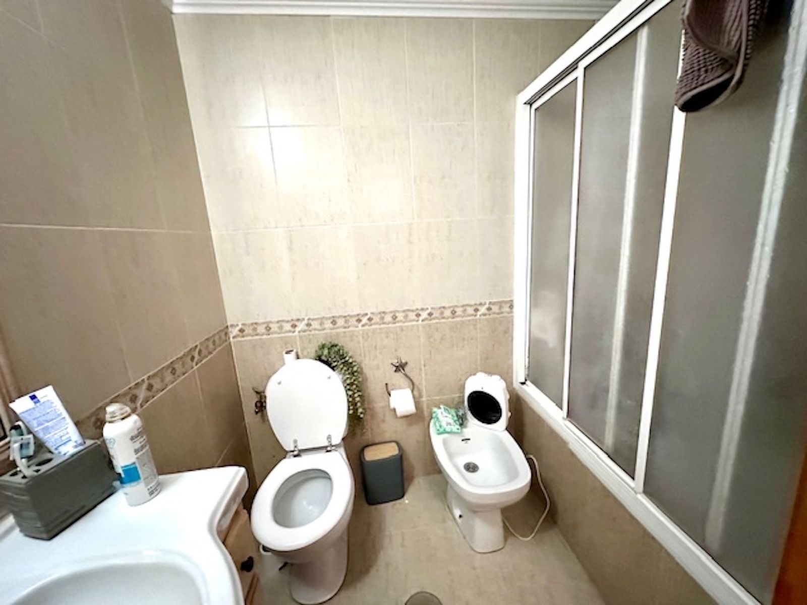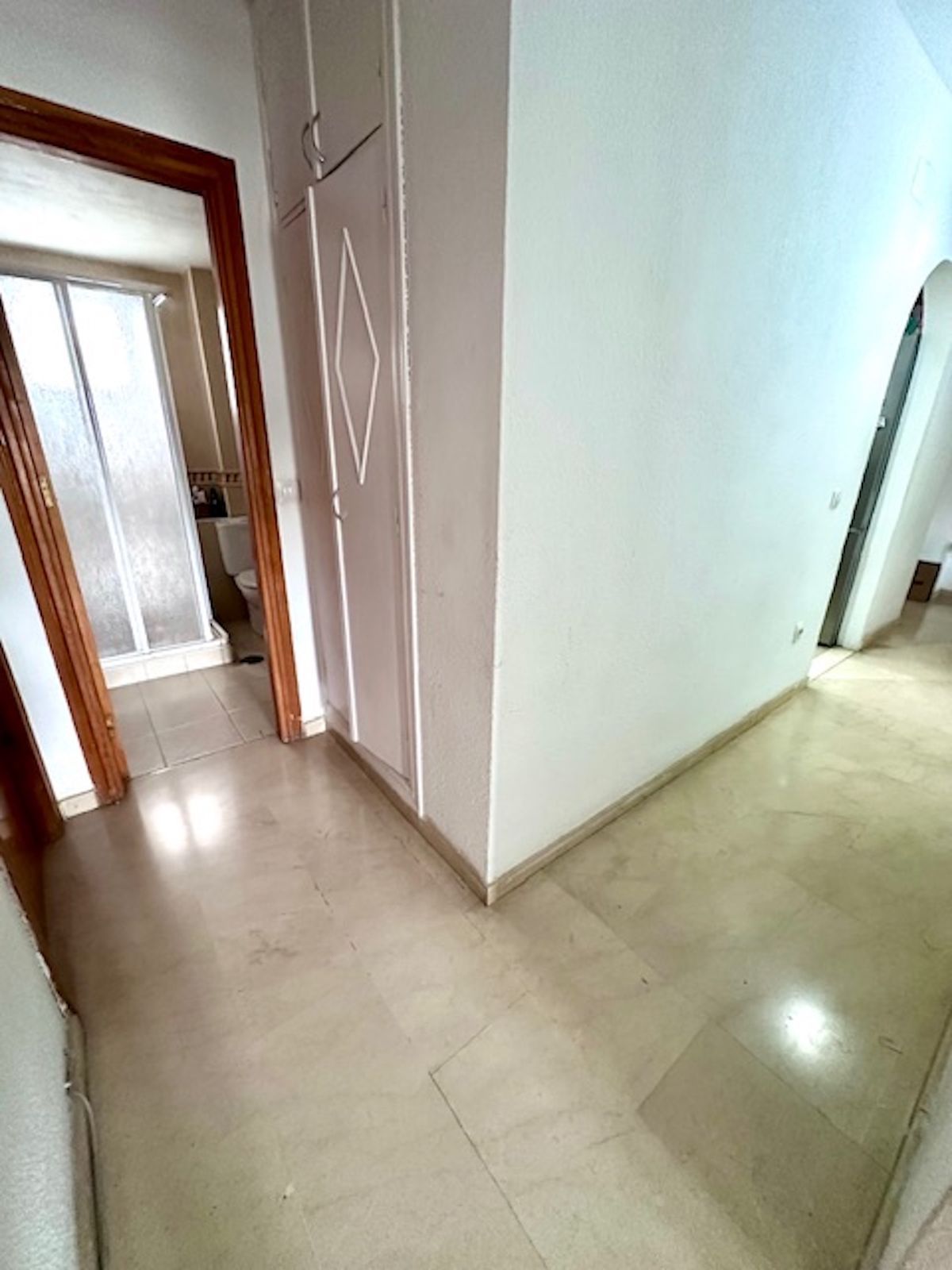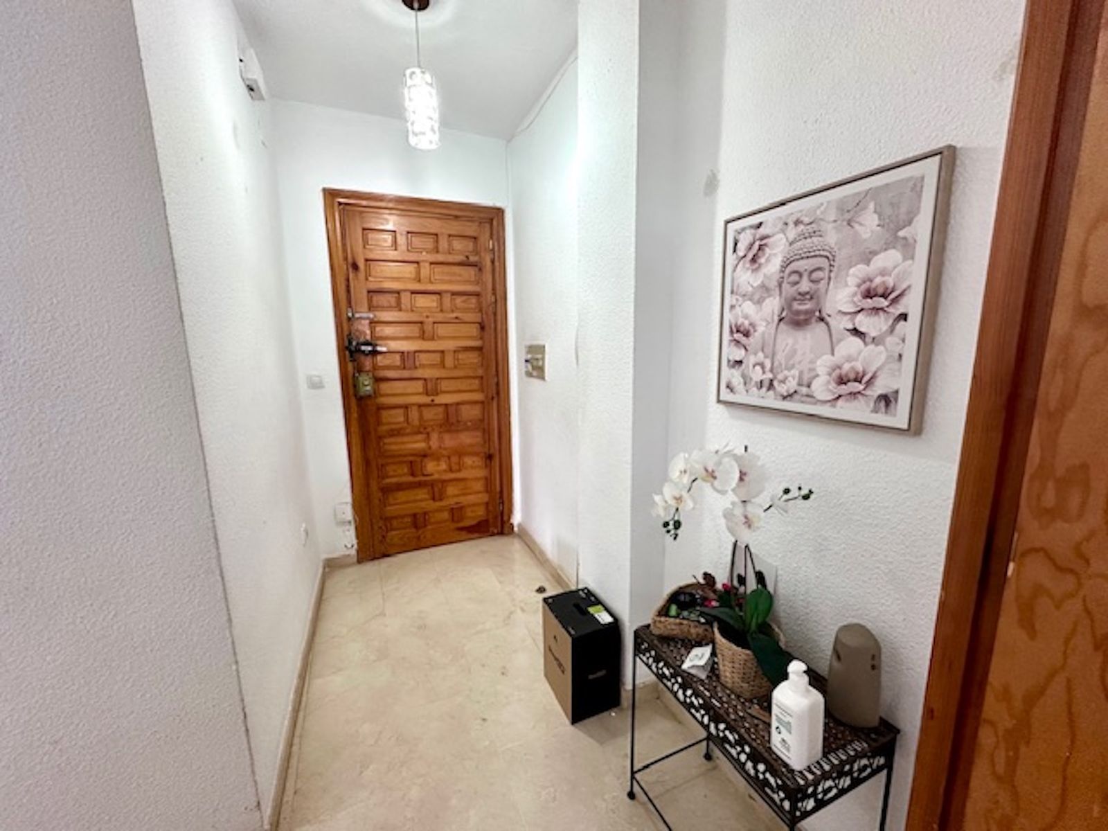 Apartamentul este mult mai mare decât pare, cuprinzând un hol de intrare, o bucătărie modernizată și generos dimensionată în dreapta, și un living/salon spațios cu acces la terasa principală și vedere asupra comunității și piscinei.
