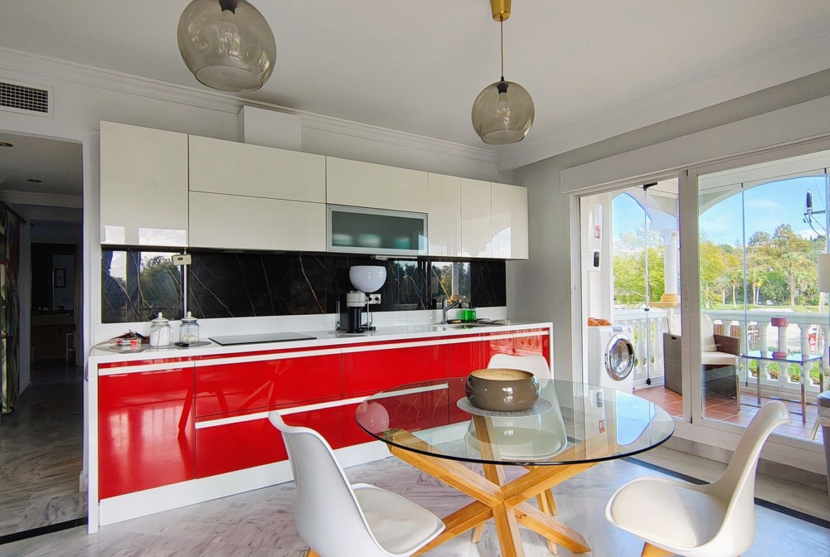 Suntem încântați să vă prezentăm acest apartament de colț excepțional, perfect situat într-una dintre cele mai strategice și căutate locații din Nueva Andalucía. Situat la etajul întâi cu o orientare sud-estică luminoasă, această proprietate se remarcă prin lumina naturală și poziția sa privilegiată într-o comunitate închisă de prestigiu.