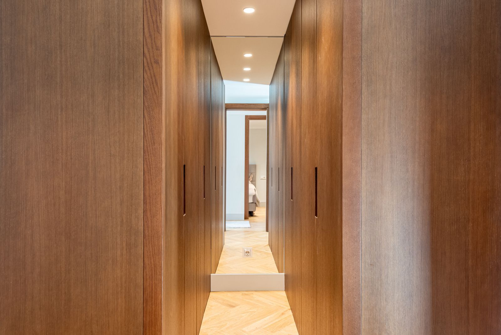 The property comprises 2 bedrooms and 2 bathrooms, including a master suite with its own en-suite bathroom and a walk-in closet. Premium finishes include genuine oak wooden floors and underfloor heating in the bathrooms, ensuring both comfort and elegance.