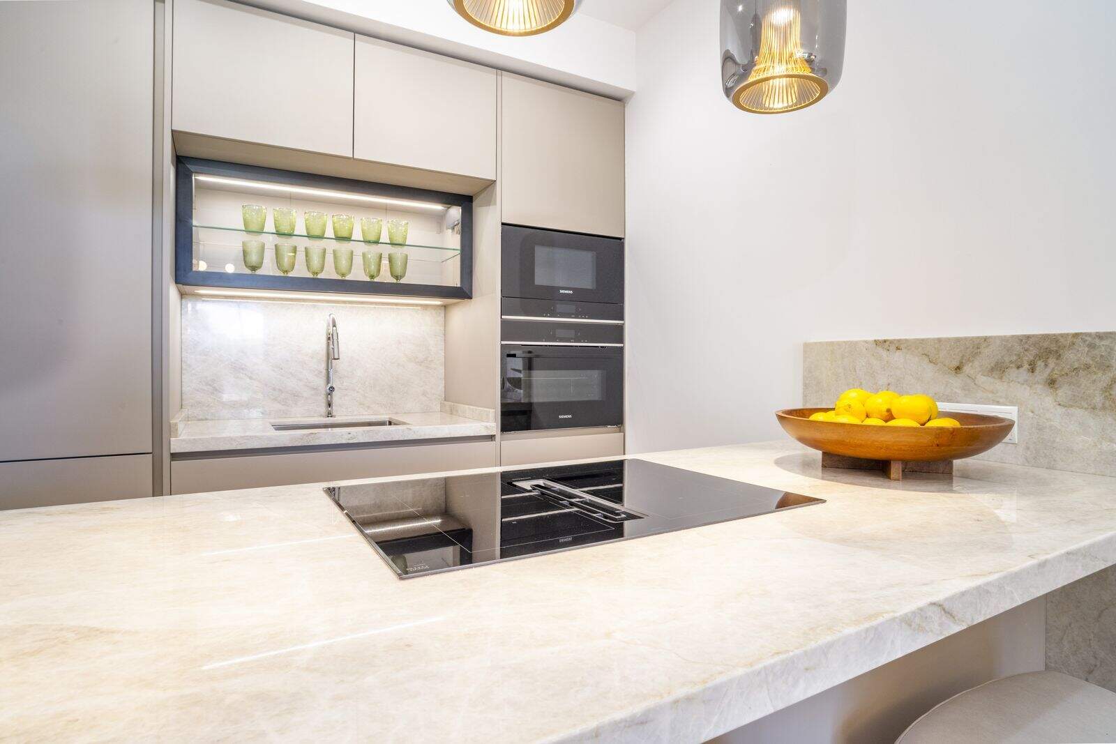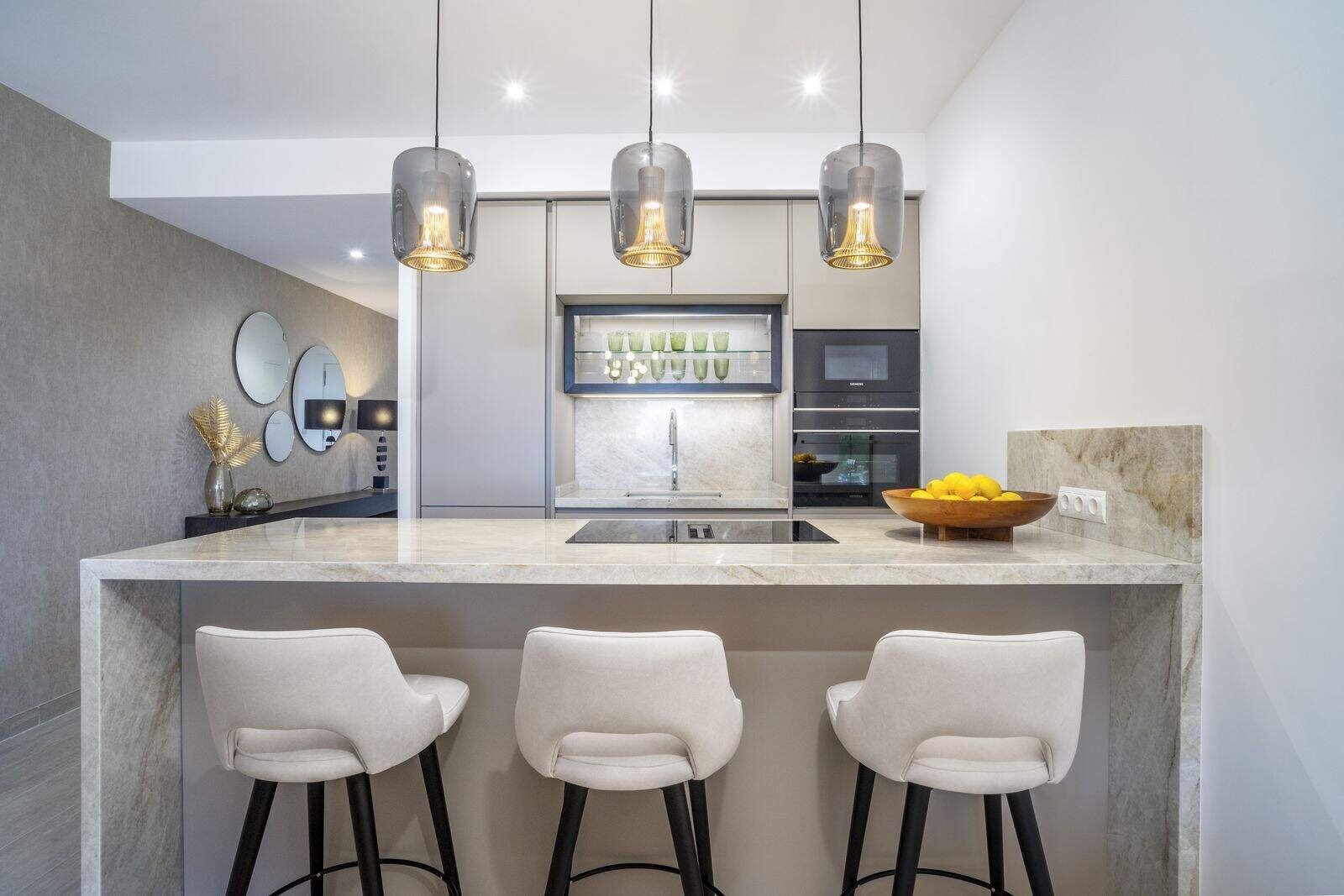 Interiorul este la fel de impresionant, cu pardoseală din ceramică în întreaga casă și dulapuri mari încorporate care oferă un spațiu generos de depozitare. Bucătăria dispune de blaturi elegante din marmură, asociate cu aparate de înaltă calitate Siemens, inclusiv o mașină de spălat și un uscător. Obloanele electrice din toate camerele oferă un plus de confort și siguranță.