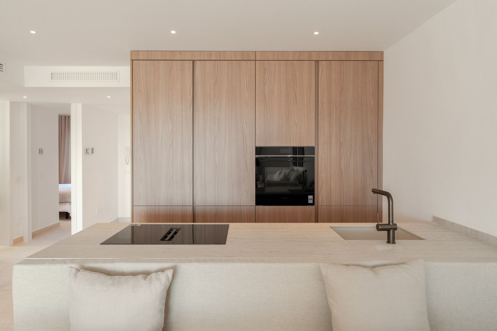 Apartamentul cuprinde trei dormitoare de dimensiuni generoase, inclusiv unul cu baie privată, asigurând confort și intimitate atât pentru rezidenți, cât și pentru vizitatori. Încălzirea prin pardoseală în băi oferă confort pe tot parcursul anului.