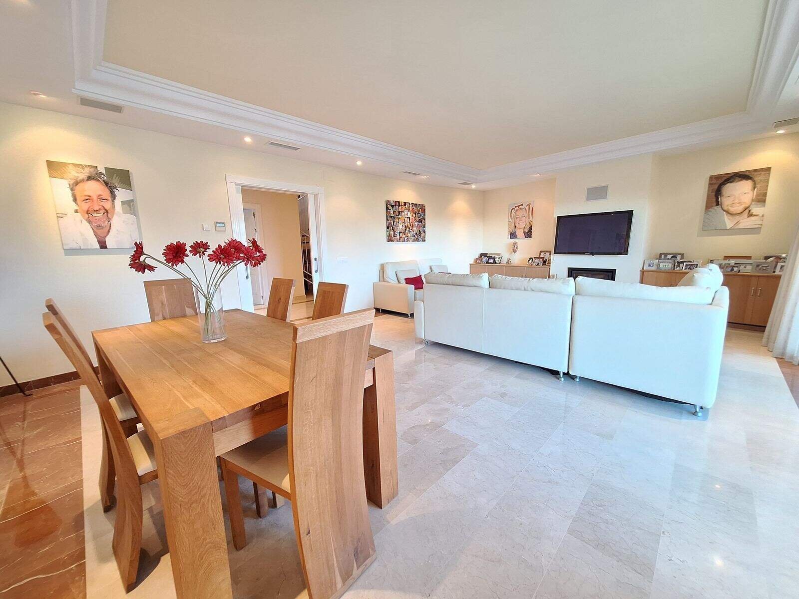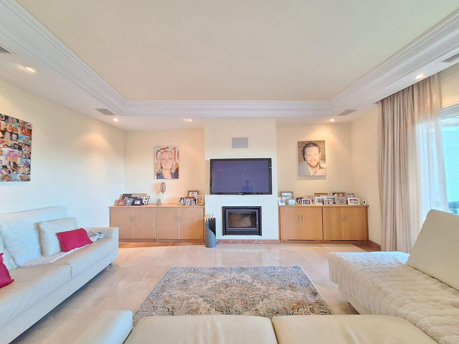 Spațiul principal de living este o zonă generoasă deschisă cu vederi panoramice uimitoare asupra munților, terenului de golf și mării. Șemineu și aer condiționat, inclusiv încălzire prin pardoseală. Un spațiu minunat care creează o atmosferă caldă și primitoare.