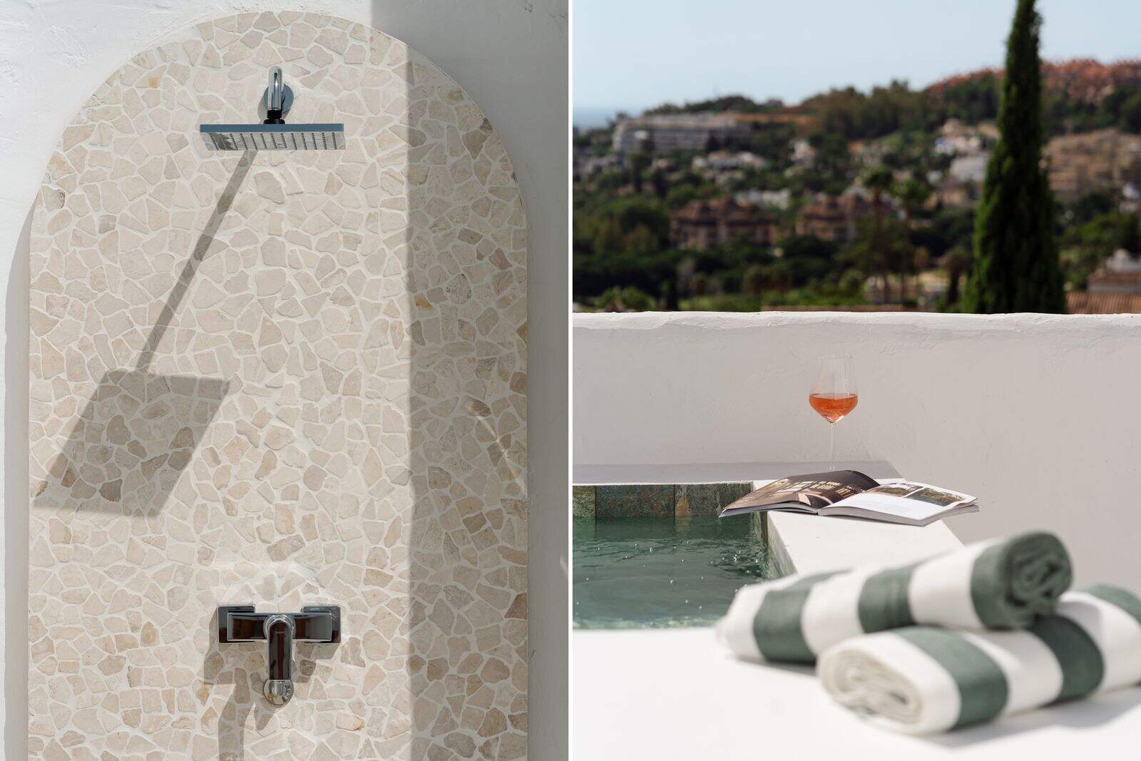 La etaj, alte două dormitoare cu baie proprie beneficiază fiecare de terasă proprie. Suita principală oferă un dressing și o terasă spațioasă completată cu o piscină privată, duș exterior și vederi neîntrerupte la mare, un adevărat refugiu.