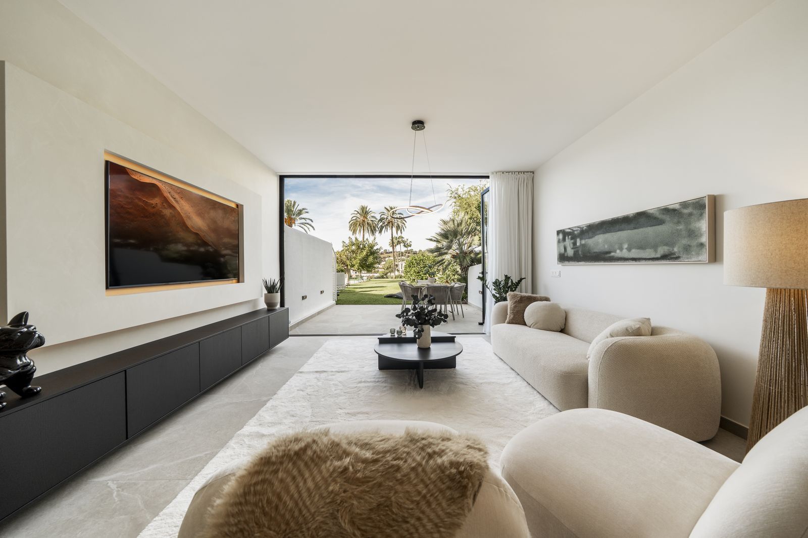 Comunitatea dispune de grădini mature cu palmieri înalți și o piscină comună liniștită, creând o atmosferă calmă și privată. Recent renovată de sus până jos, Casa Preciosa combină materiale de înaltă calitate cu un design inteligent și elegant pe două etaje luminoase. Parterul oferă un spațiu de living open-plan cu o bucătărie elegantă și un lounge primitor care se deschide către o terasă însorită – un loc ideal pentru mese în aer liber cu vedere la grădină și piscină, și acces direct la zonele verzi comune.