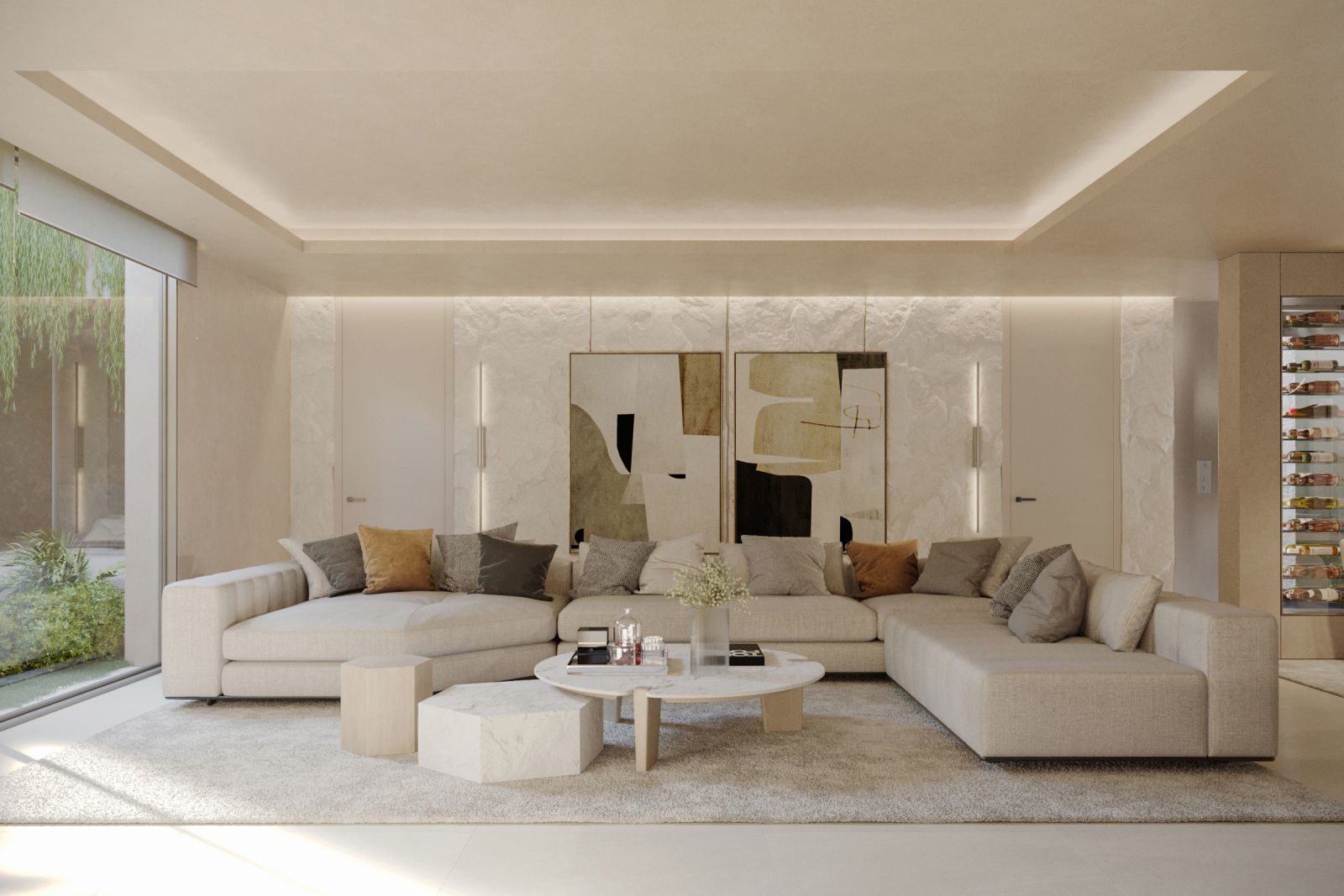 Dezvoltare nouă: Prețuri de la 6.100.000 € la 6.100.000 €. [Dormitoare: 5] [Băi: 8] [Suprafață construită: 650 m2]. Descoperiți chintesența vieții rafinate la Villa, o reședință extraordinară, construită recent, amplasată în prestigioasa enclavă Nueva Andalucía, Marbella. La doar câțiva pași de exclusivistul Club de Golf Las Brisas și la câteva minute de renumitul Marina Puerto Banús, această vilă excepțională întruchipează însăși esența luxului mediteranean. Amplasată pe un teren generos de peste 1014,36 metri pătrați, Villa se mândrește cu o suprafață totală construită de 650,17 m², dintre care 534,64 m² sunt dedicați spațiilor de locuit deosebite. Fiecare centimetru al acestei proprietăți a fost meticulos realizat pentru a oferi un stil de viață de neegalat, plin de confort și rafinament. Designul elegant al vilei îmbină perfect arhitectura contemporană cu frumusețea împrejurimilor naturale. Ferestrele extinse de la podea până la tavan invită la o abundență de lumină naturală, sporind aspectul open space și oferind priveliști uluitoare asupra peisajului luxuriant și a spațiilor exterioare senine. Proiectată cu o integrare perfectă a vieții interioare și exterioare, aspectul open space al vilei este accentuat de tavane cu înălțime dublă care inundă spațiul cu lumină naturală. Distrați-vă cu ușurință în bucătăria ultramodernă, relaxați-vă în zonele elegante de living sau găzduiți întâlniri de neuitat în spațiile exterioare extinse. Bucătăria exterioară și piscina infinită oferă cadrul perfect pentru mese în aer liber și relaxare, înconjurați de peisajul luxuriant. Vila depășește limitele obișnuitului, oferind o sală de sport complet echipată, un centru spa complet cu saună și hamam, un bar sofisticat și o sală de jocuri, un garaj subteran pentru două mașini și un lift. Arhitectura contemporană a vilei se îmbină perfect cu împrejurimile naturale, creând o experiență de viață atât luxoasă, cât și senină. Vila este o capodoperă a designului modern, promițând un stil de viață excepțional într-una dintre cele mai căutate locații de pe Costa del Sol. Îmbrățișați supremul vieții sofisticate și faceți din această proprietate uimitoare a dumneavoastră. Această vilă uimitoare dispune de cinci dormitoare spațioase, fiecare cu propria baie proprie luxoasă. Apartamentul matrimonial este un adevărat sanctuar, oferind o baie generoasă, un dressing și priveliști impresionante asupra împrejurimilor verzi. Două băi suplimentare pentru oaspeți, câte una la fiecare etaj, adaugă confort și eleganță casei.